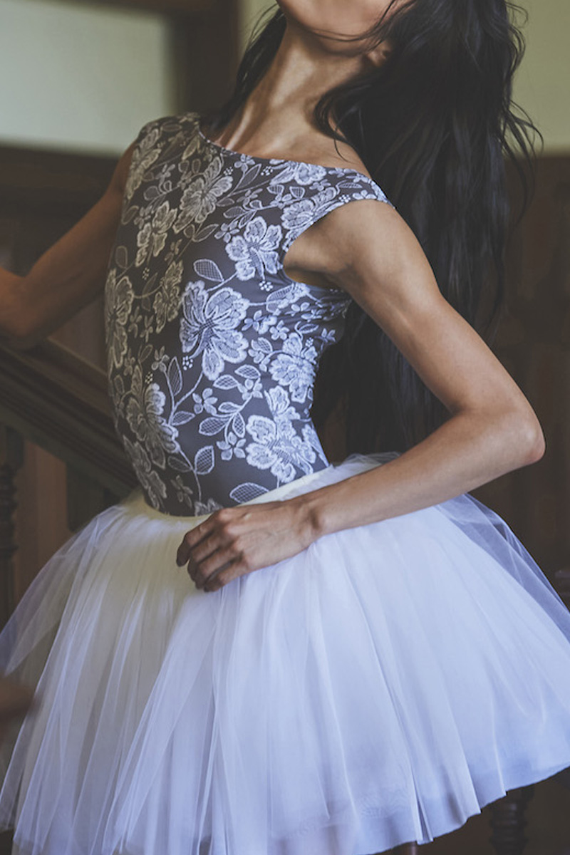directorとお客様との会話からうまれた、type O squareキャップスリーブバージョン。ボートネックレオタードと絶妙なキャップ袖がドッキングされた新型。スクエア背中でよりスタイリッシュな印象に。クロスのトリムでより女性らしさをプラスし、細身効果も抜群。