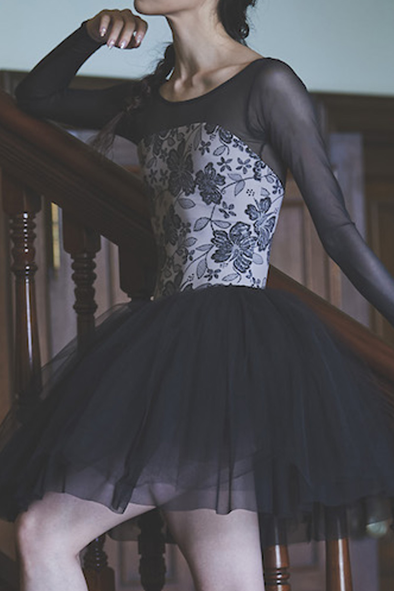 ブラックで繊細に描かれたお花と葉のディティールがノスタルジックな雰囲気。