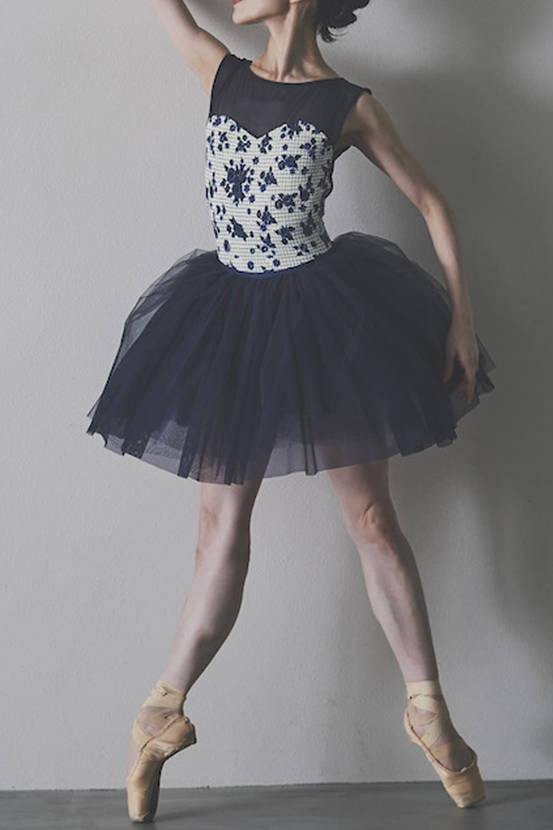 dark navyのパワーネットとの合わせで全体に統一感を持たせ、クラシカルで上品な一枚に。