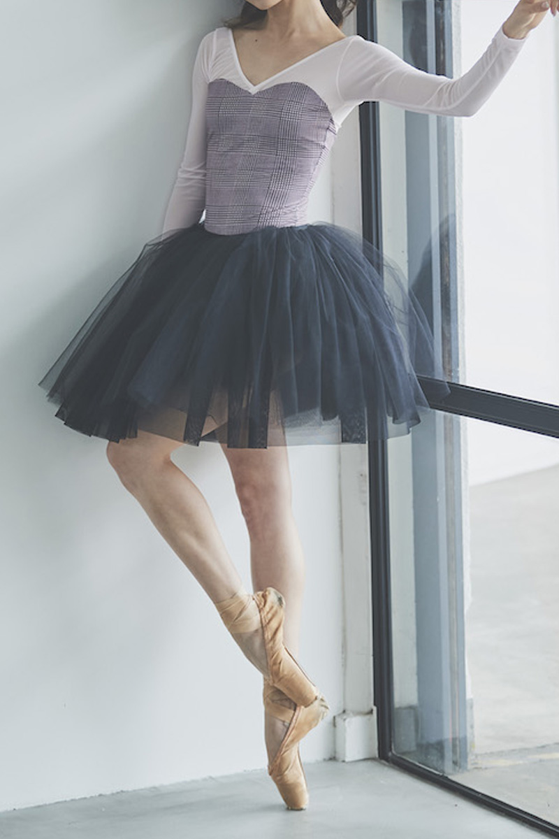ボートネックレオタードと長袖がドッキングされた大人気の型。