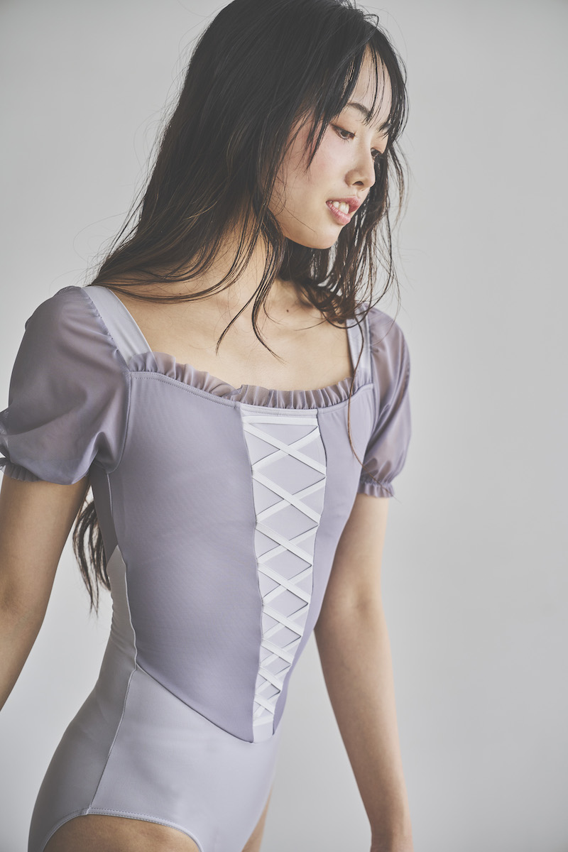 胸元からウエストにかけてのクロスになるレースアップディテールが縦のラインを強調し、上半身をしなやかに見せます。