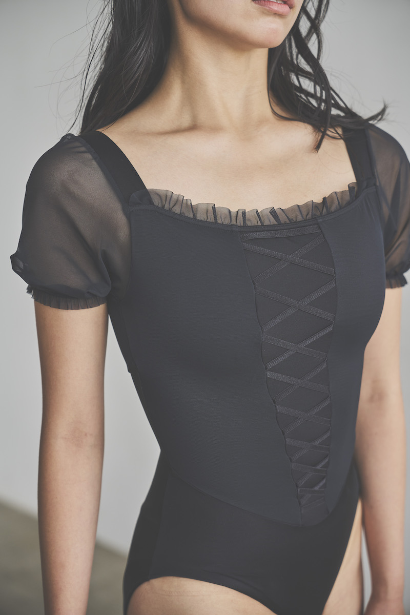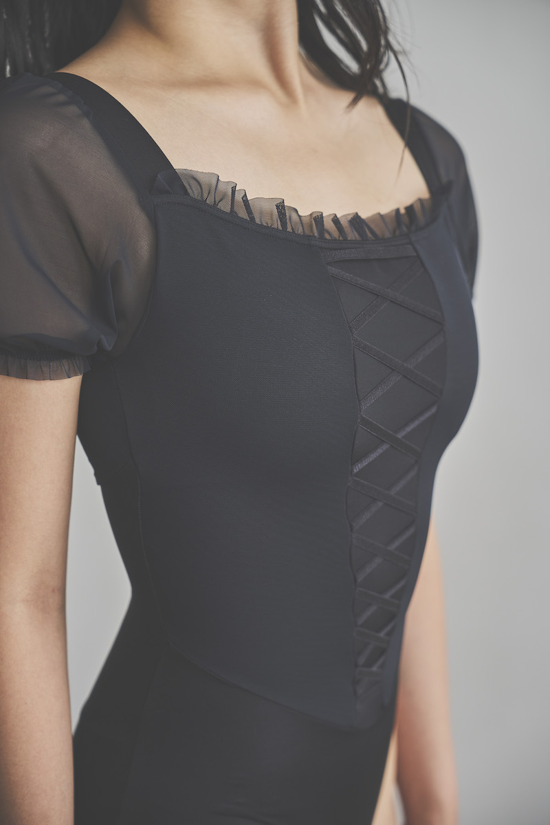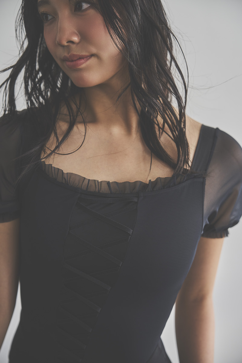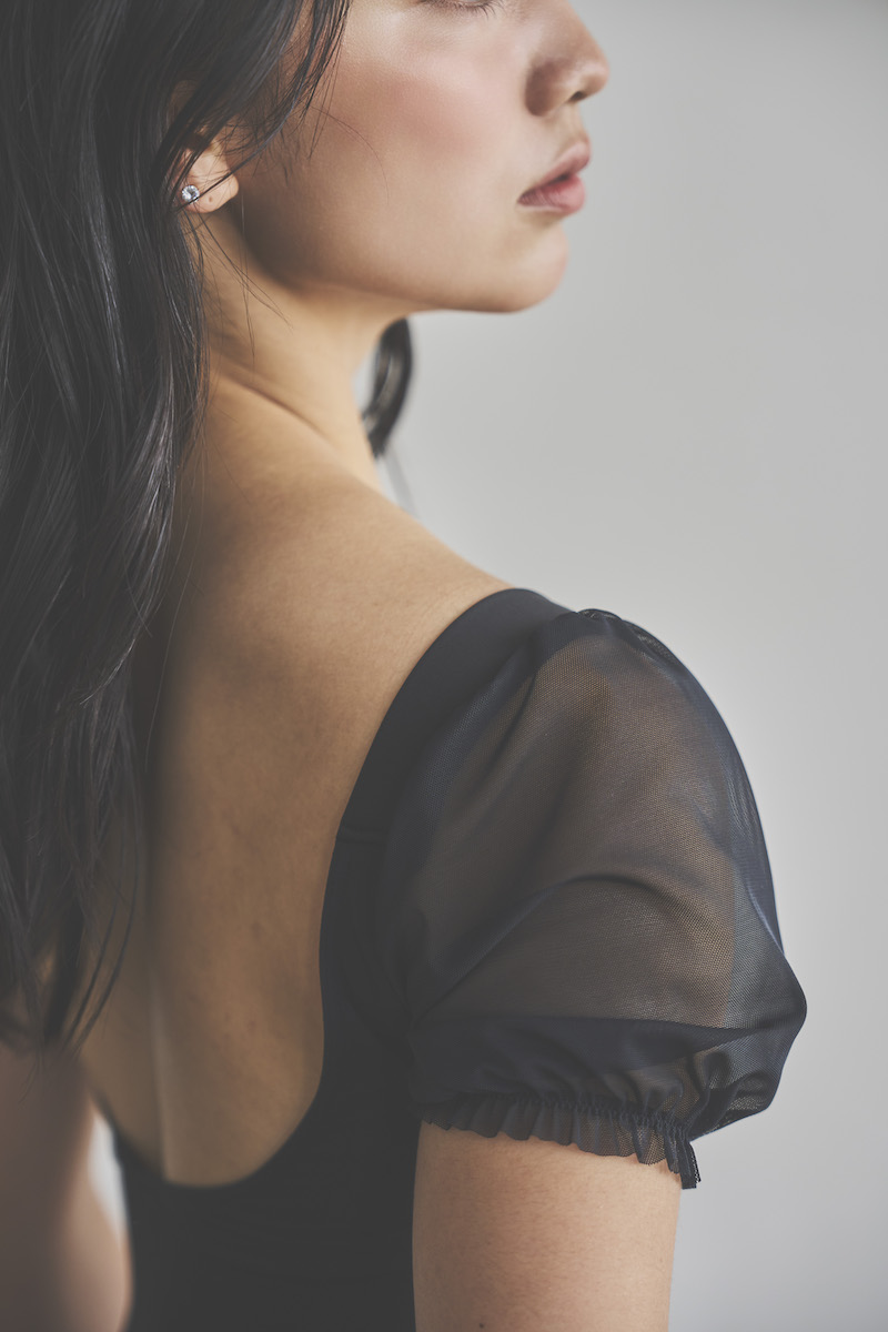 ふんわりとしたパフスリーブは、薄く繊細なパワーネット素材を重ね、
