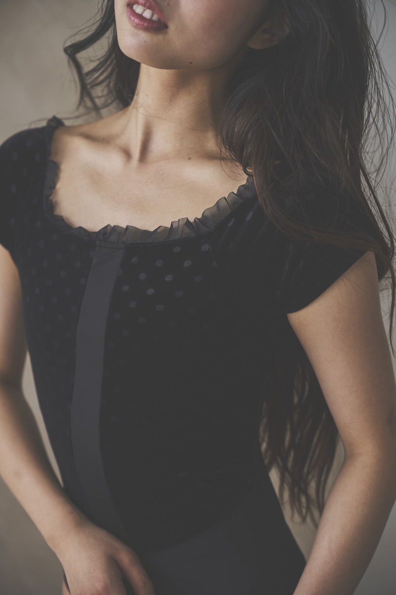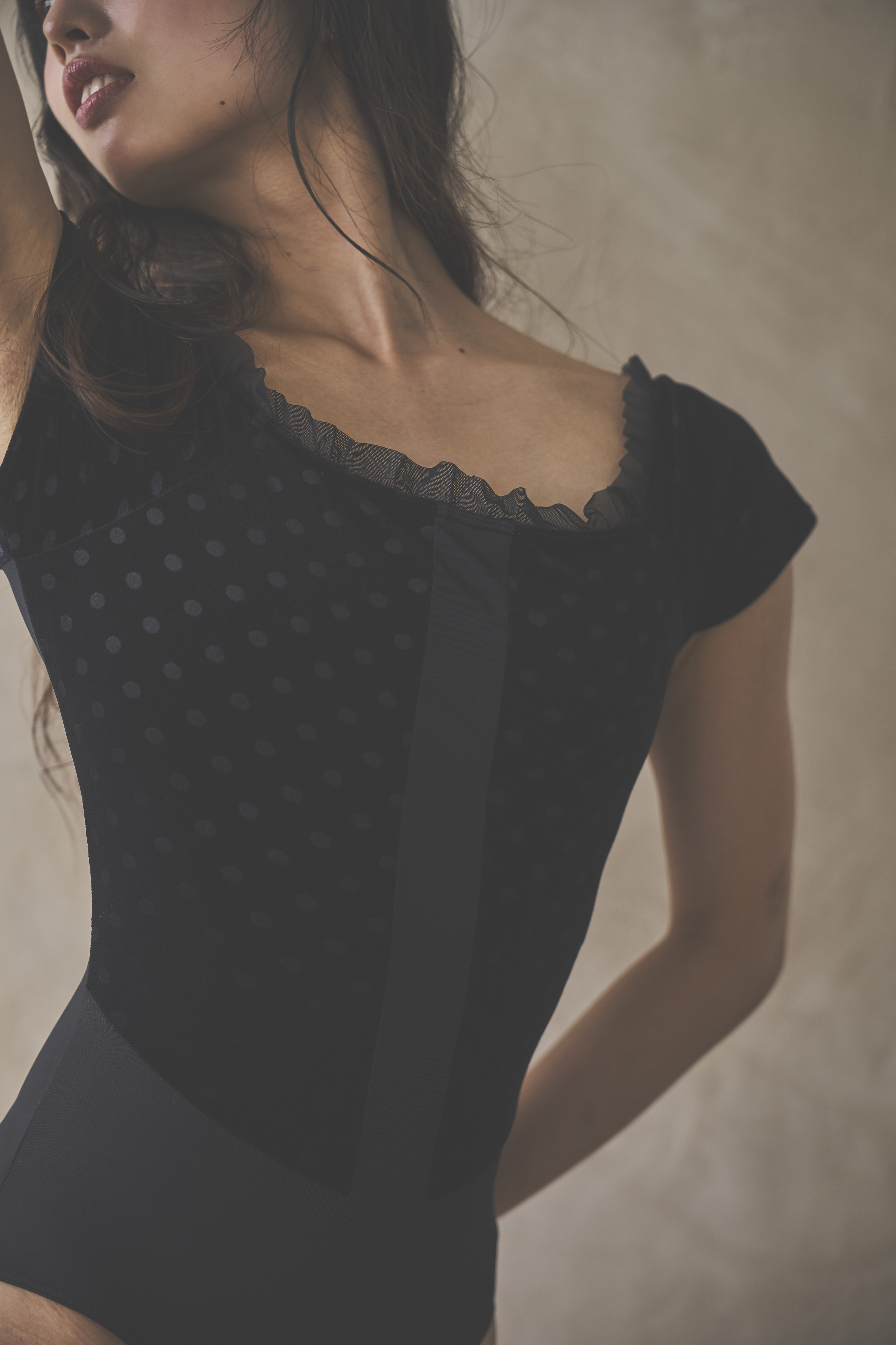 可愛らしさを演出するパフスリーブとデコルテラインの細やかなギャザー、