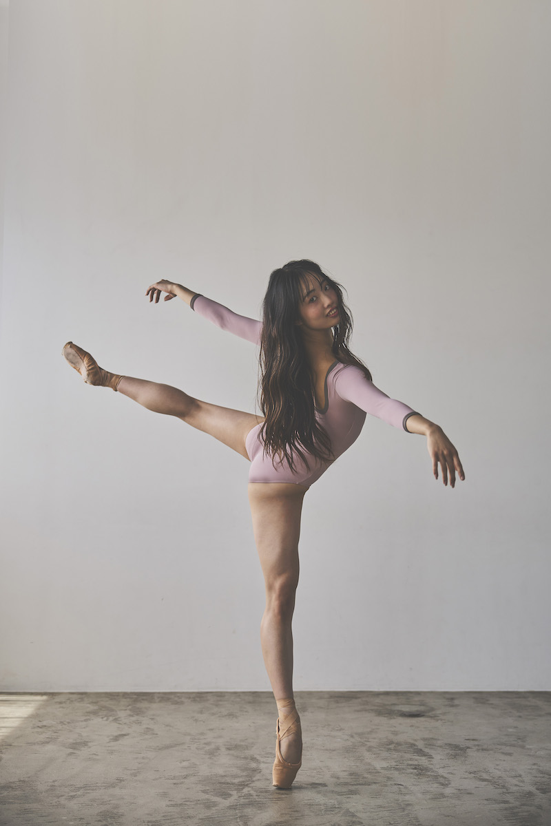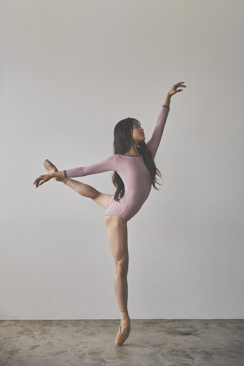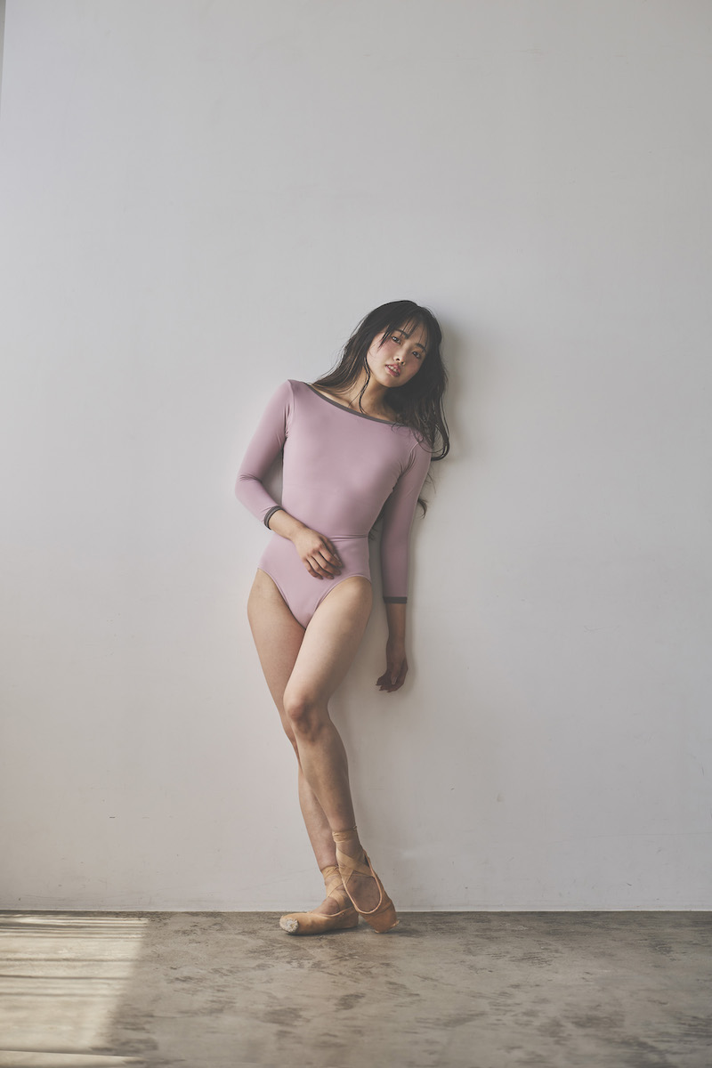 長袖シルエットとコントラスト配色のパイピングが、静けさの中に芯のある美しさを引き出します。