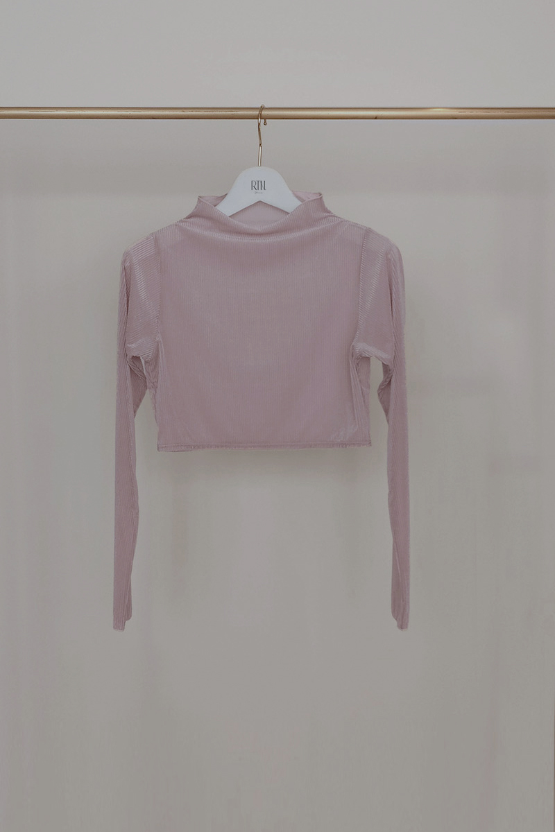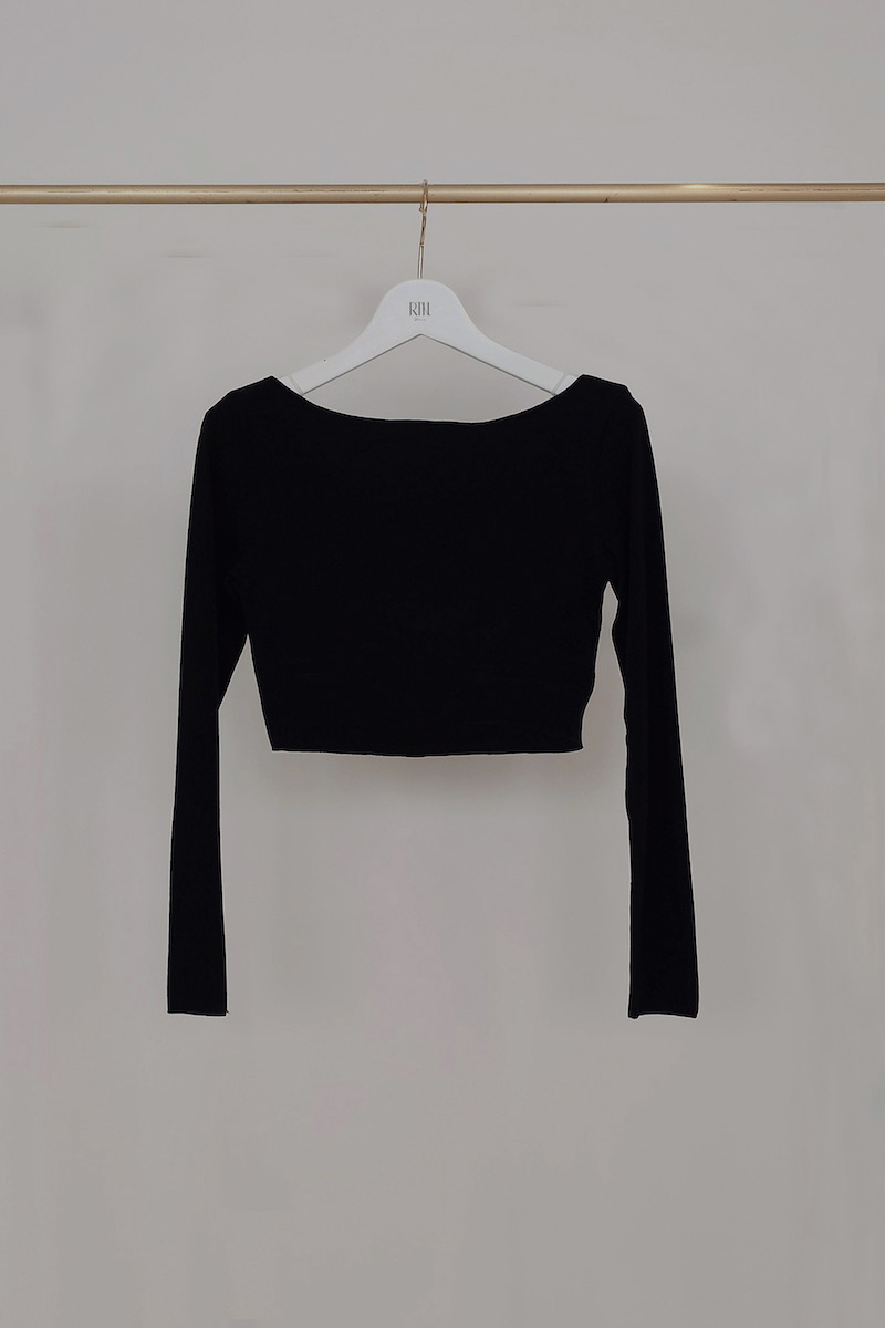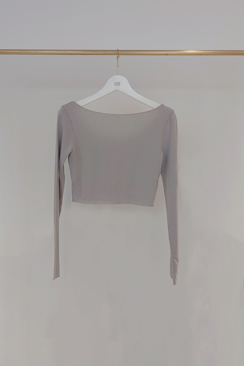 背中を美しく見せる深めのVカットバックデザインと中央に寄せたギャザー仕様が立体感を生み、後ろ姿に自然な陰影と女性らしいニュアンスをプラス。