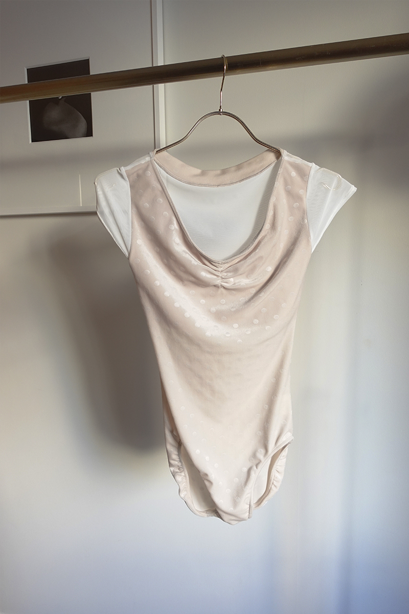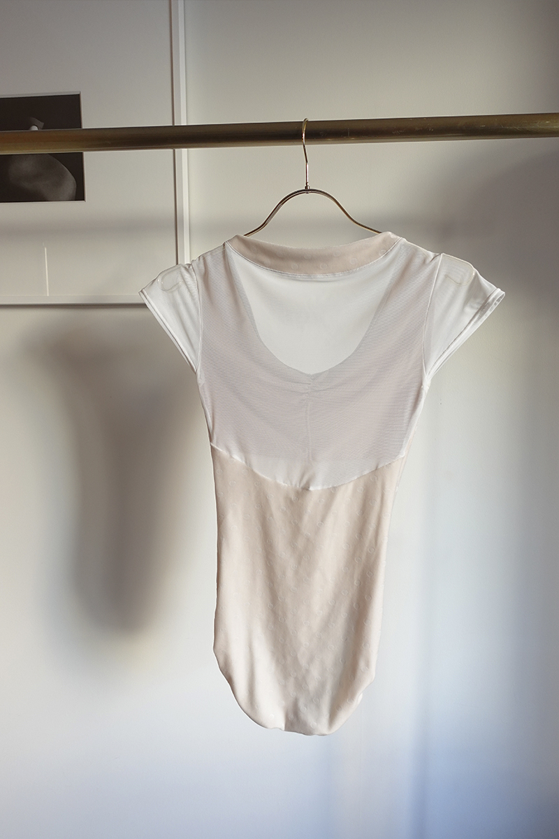 胸元に寄せた繊細なギャザーが、シンプルなシルエットに表情を生み、
