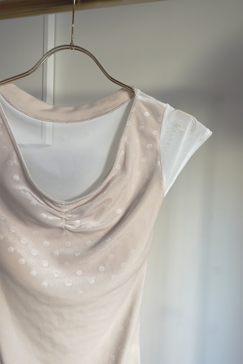 ベロアドットのほのかな光沢が肌に寄り添い、