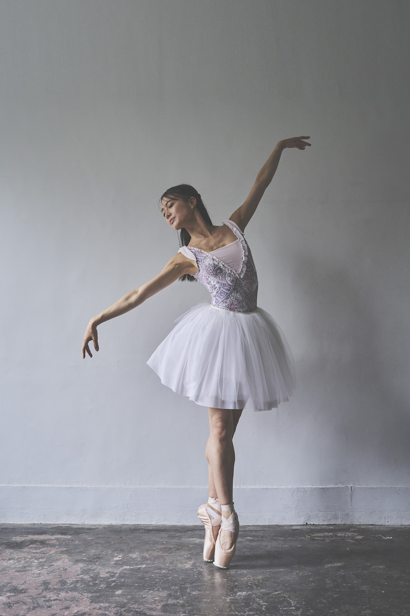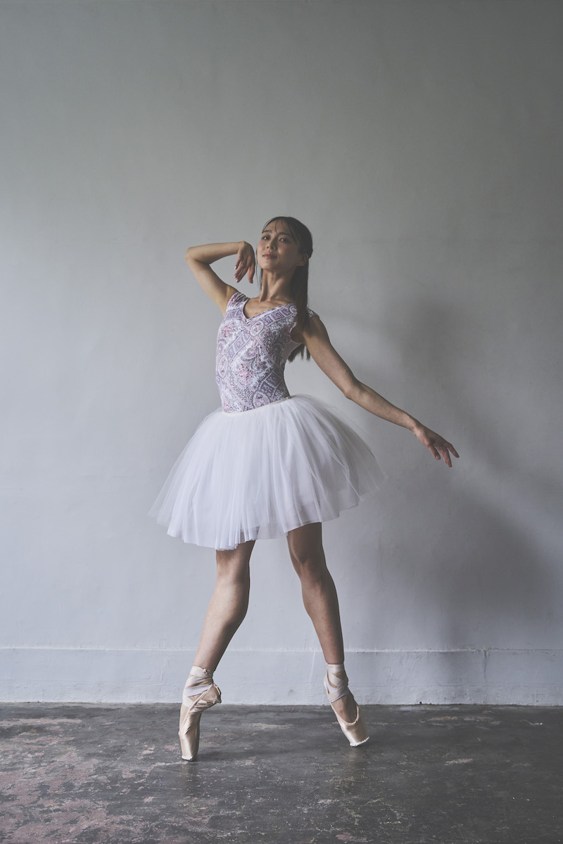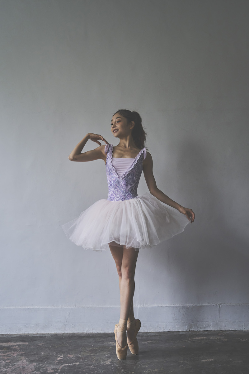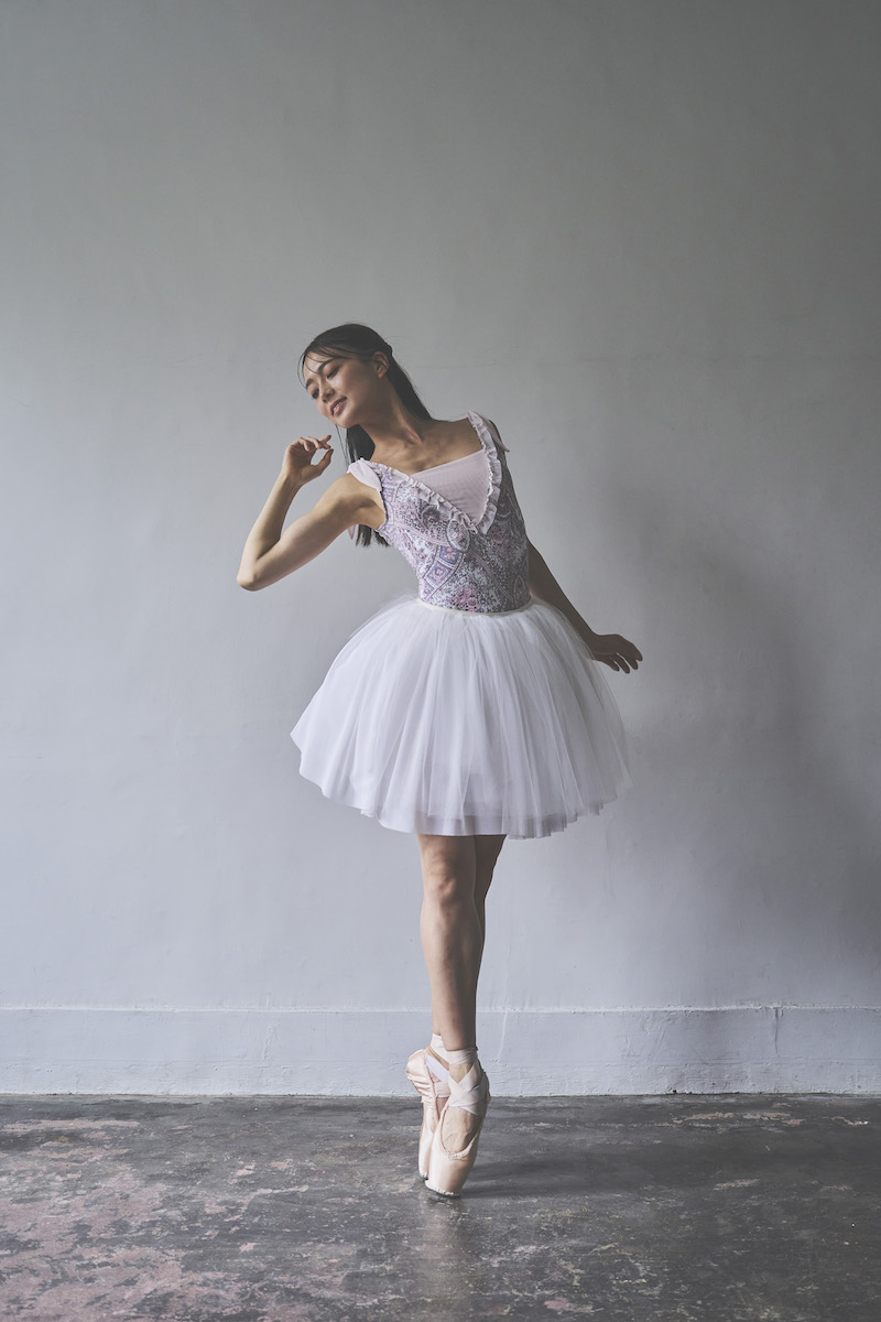 色彩の重なりが生み出す柔らかな陰影が、女性らしさを引き立てます。