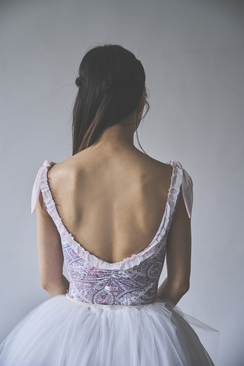 フリルをふんだんに使用し可愛さを際立たせ、肩部から流れるリボンは二の腕を隠しスタイルアップ。肩紐は取り外し可能で2wayに。胸元のVカットにはデコルテの美しさを際立たせる美ラインを追求。一見ラブリーに見えますが、着用するとたちまち色っぽく見えるジュリエット。