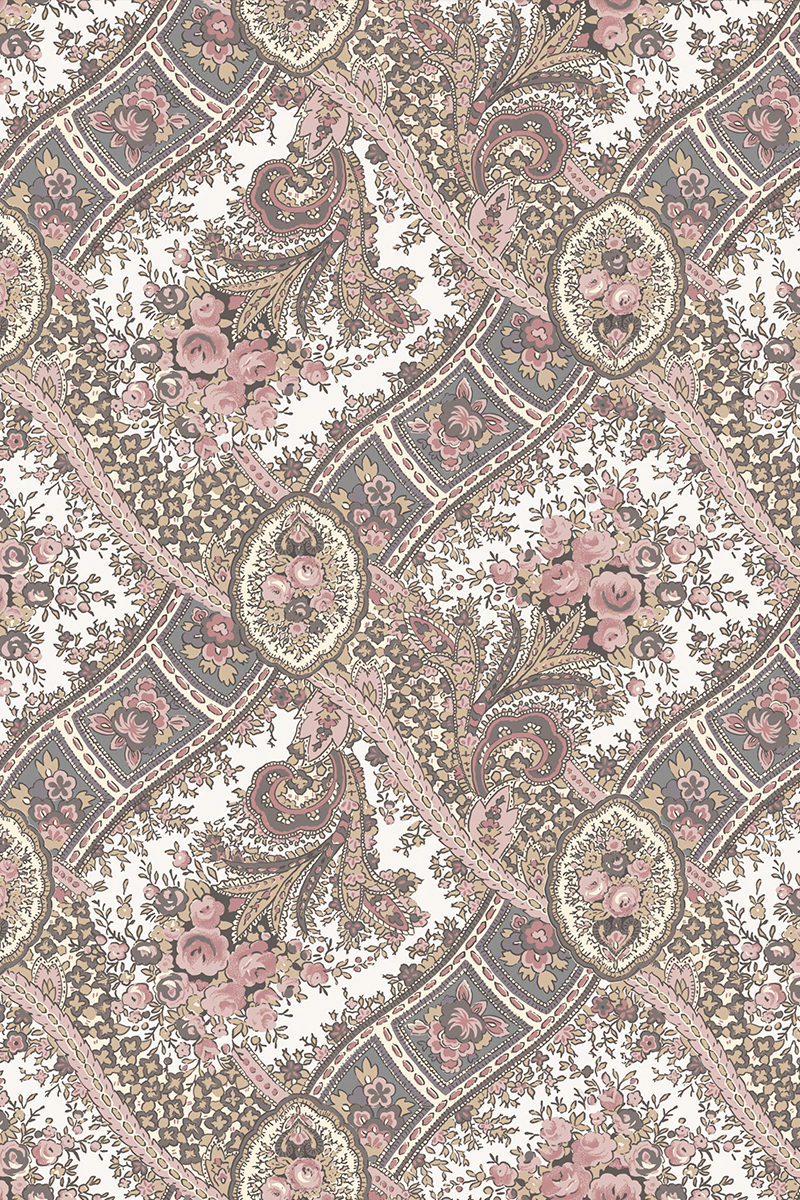 繊細な花々とクラシカルなペイズリー柄が美しく調和した、華やかで上品なファブリック。