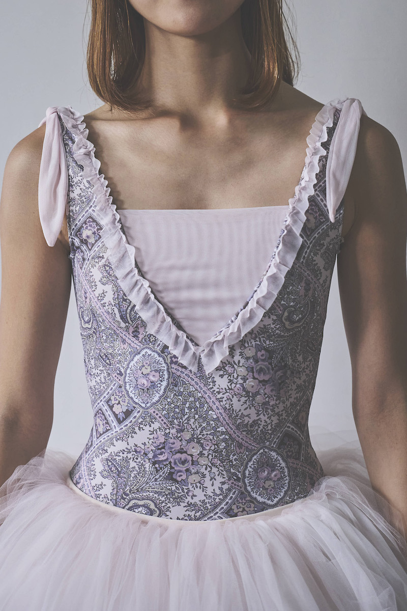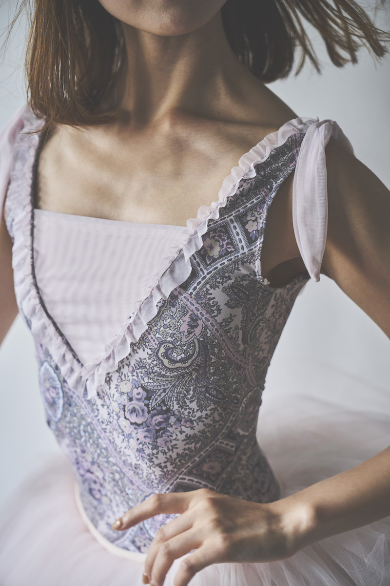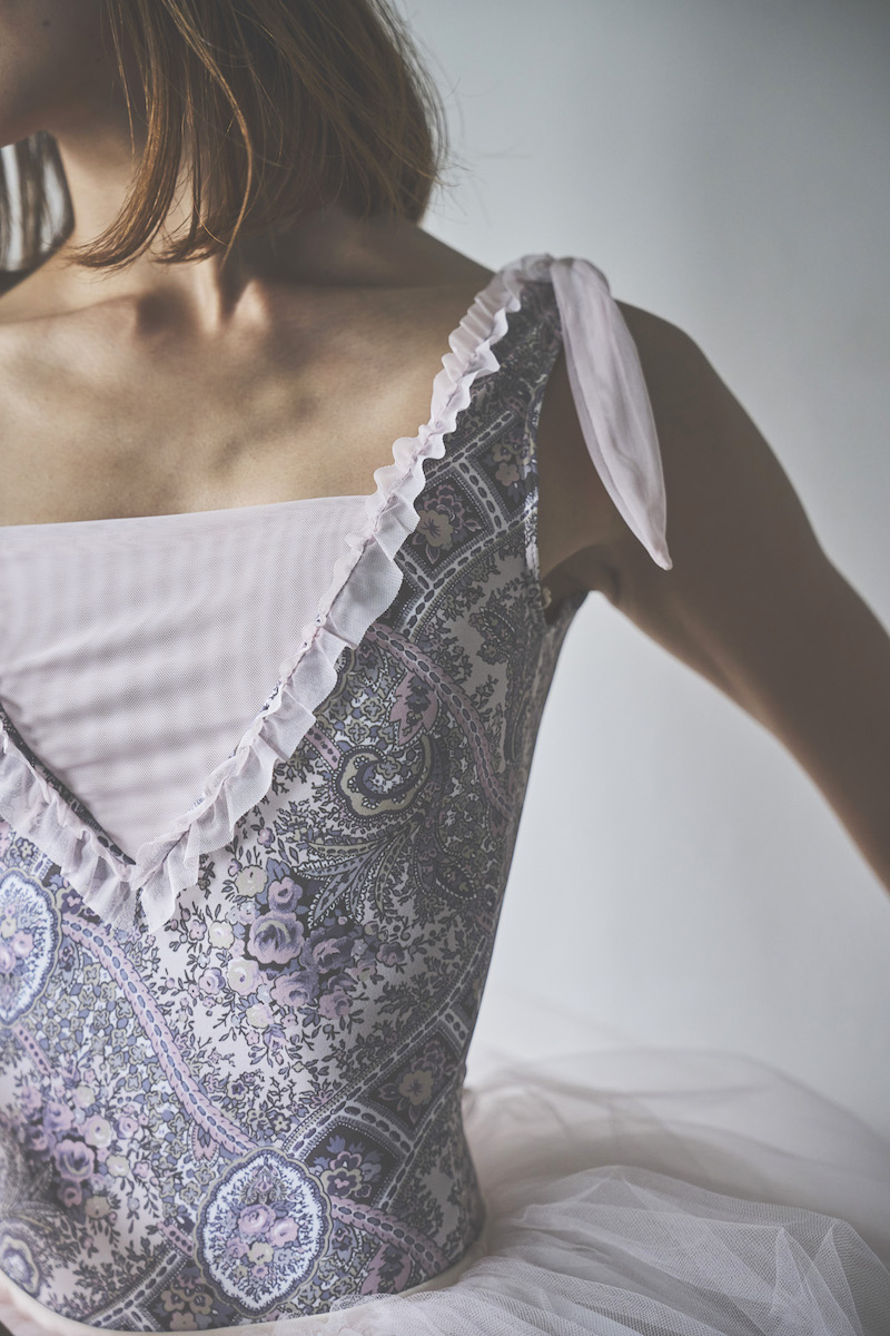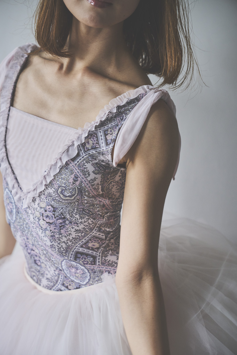 フリルをふんだんに使用し可愛さを際立たせ、肩部から流れるリボンは二の腕を隠しスタイルアップ。肩紐は取り外し可能で2wayに。胸元のVカットにはデコルテの美しさを際立たせる美ラインを追求。一見ラブリーに見えますが、着用するとたちまち色っぽく見えるジュリエット。