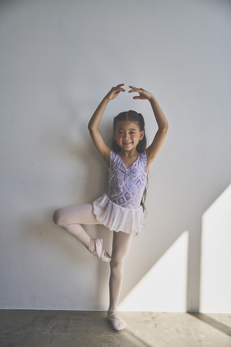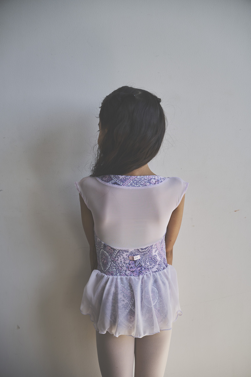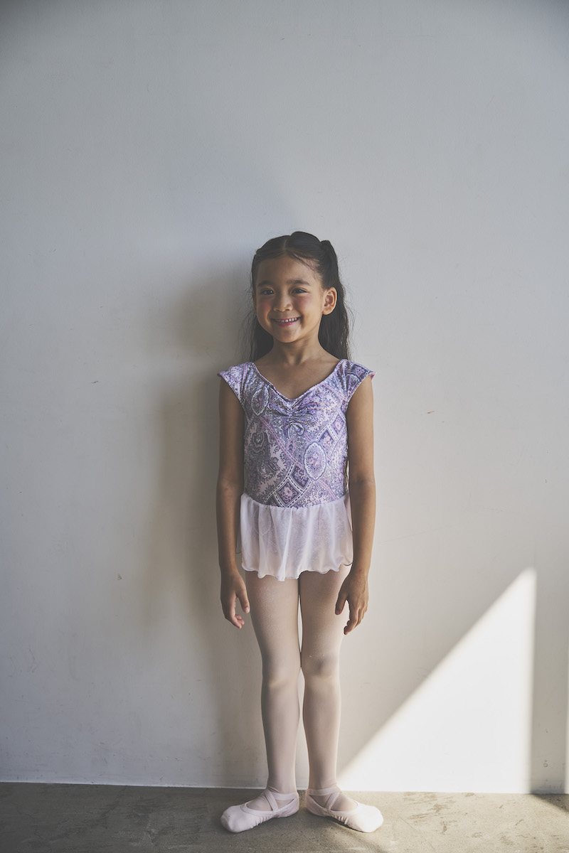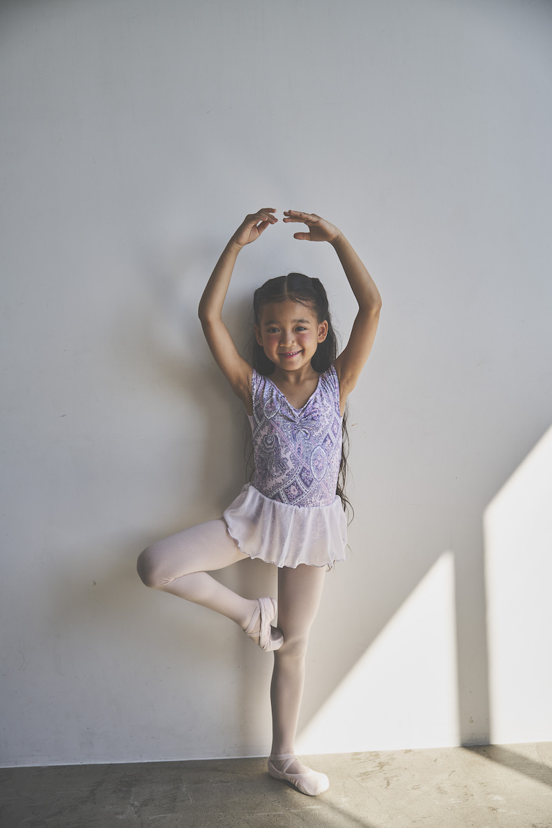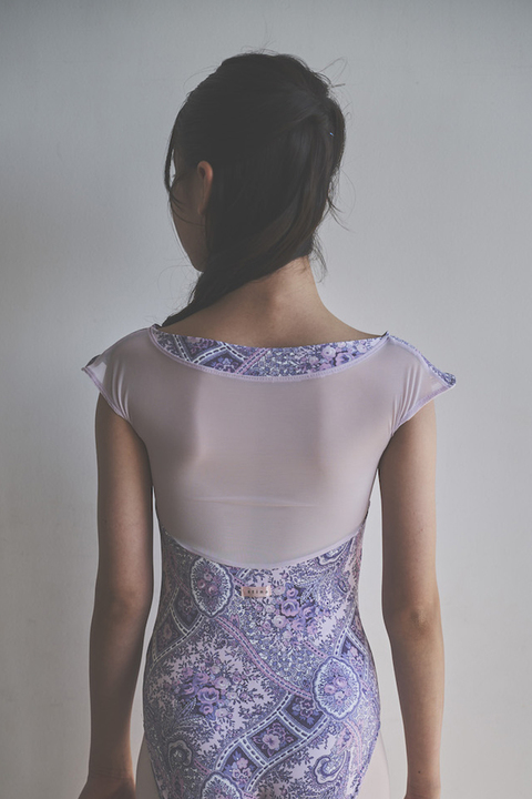 胸元に入ったギャザーがデコルテを華やかに美しく見せてくれるように追求したレオタード。