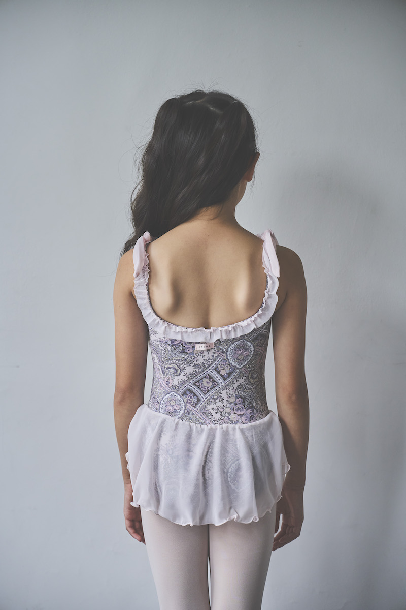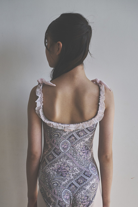 フリルをふんだんに使用し可愛さを際立たせ、肩部から流れるリボンは二の腕を隠しスタイルアップ。