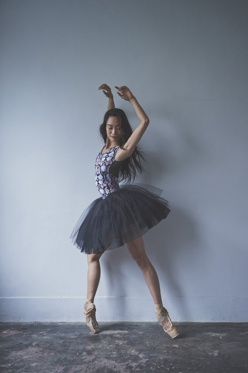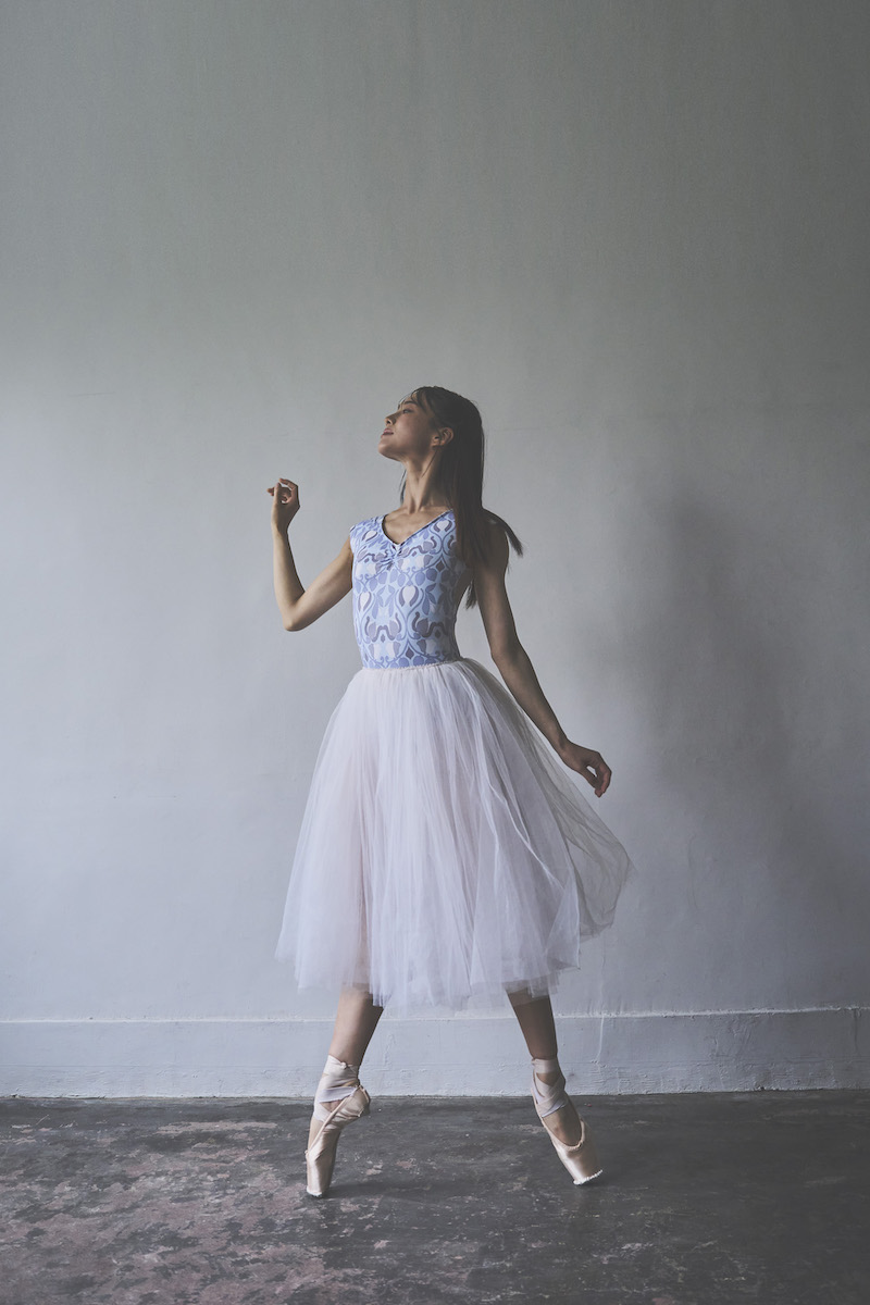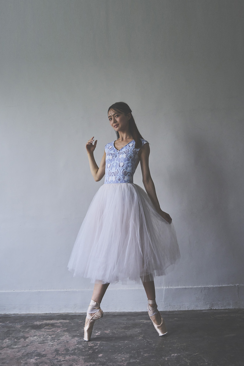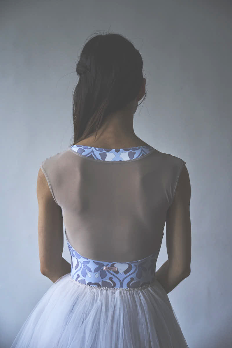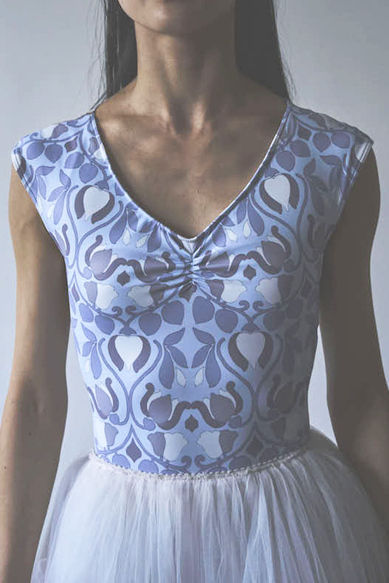 胸元に入ったギャザーがデコルテを華やかに美しく見せてくれるように追求したレオタード。