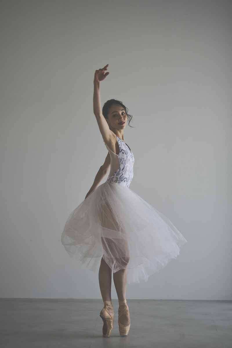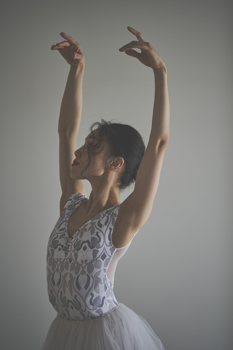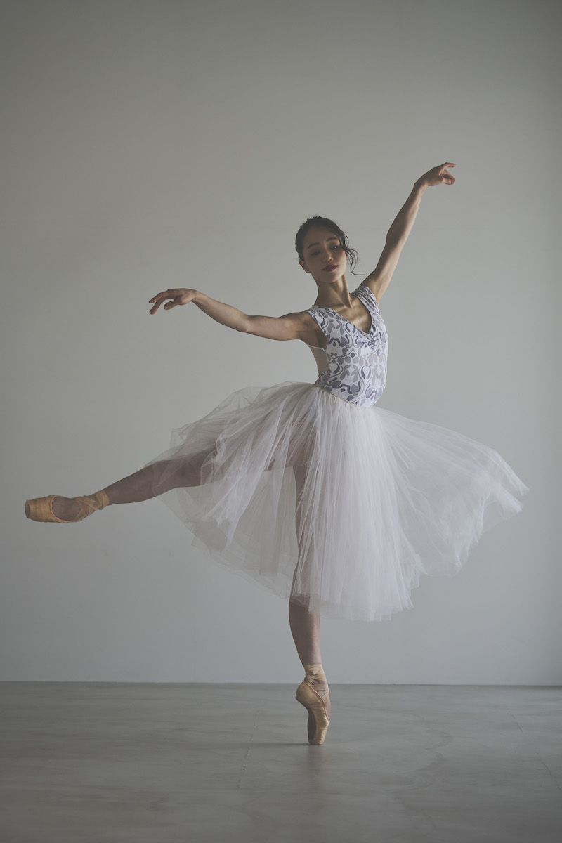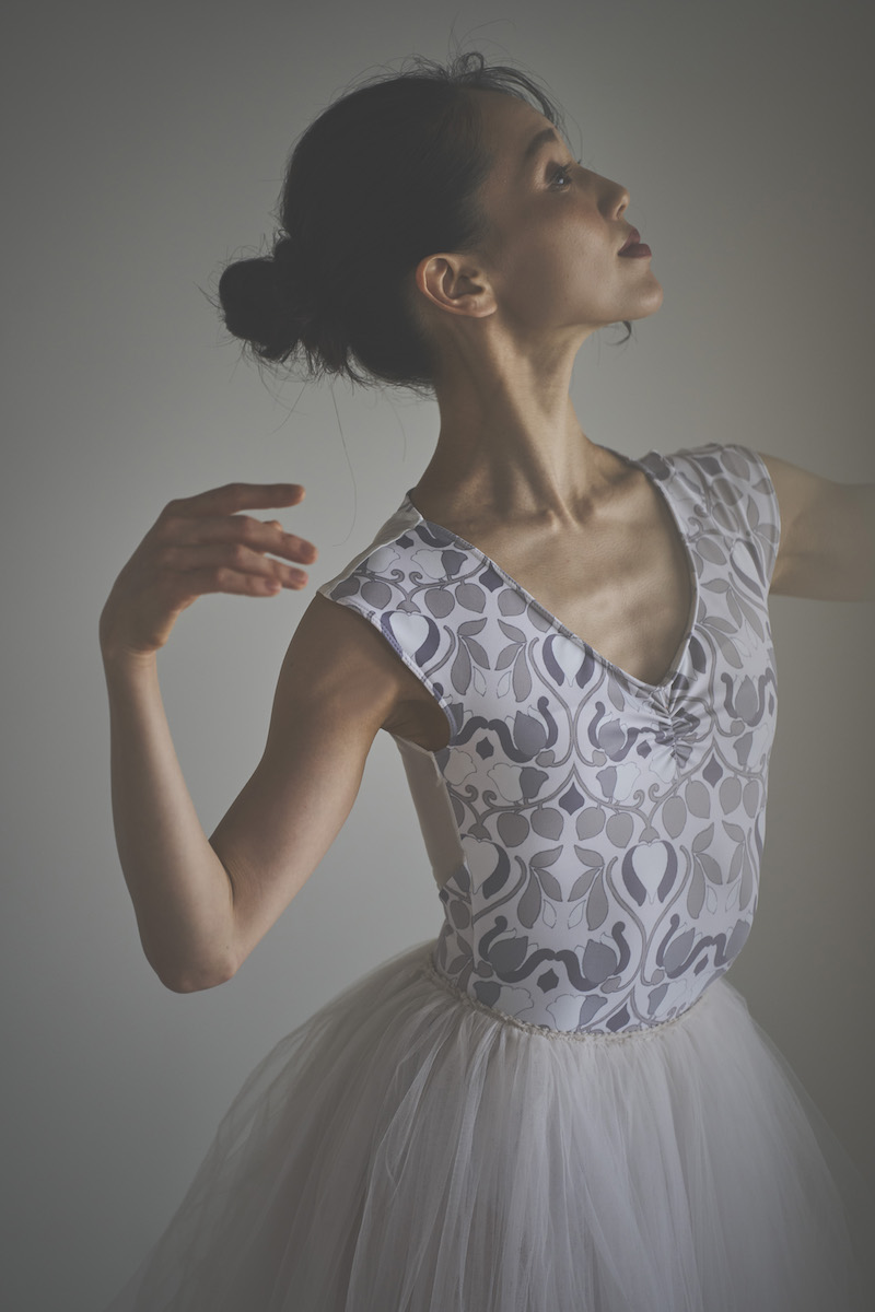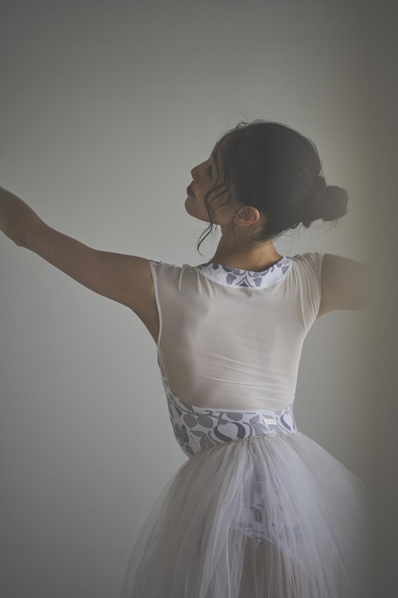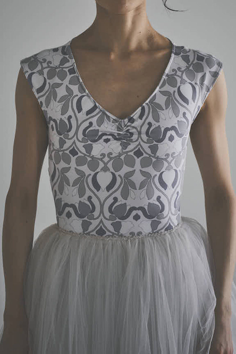 胸元に入ったギャザーがデコルテを華やかに美しく見せてくれるように追求したレオタード。