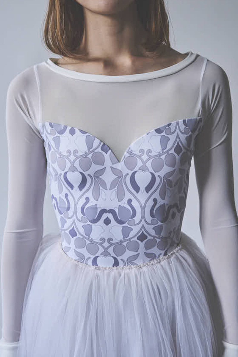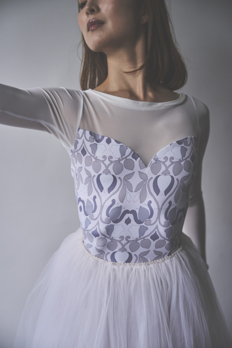 規則的に並んだリリーモチーフが、柔らかさと凛とした印象のコントラストを引き立てるモダンなテキスタイル。