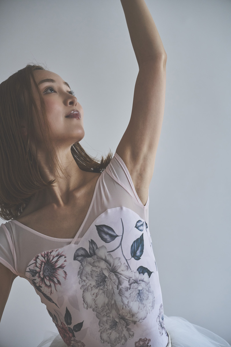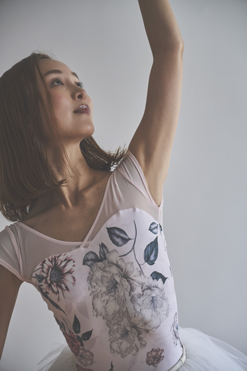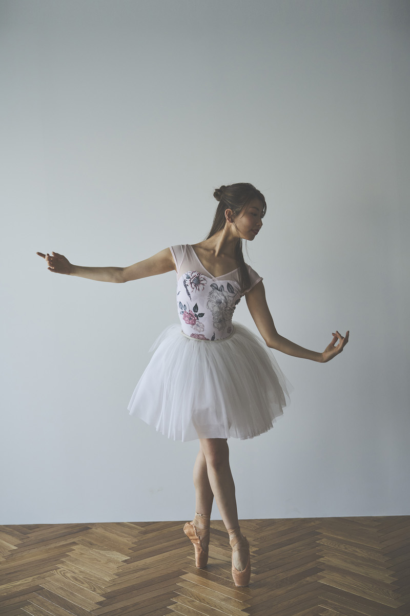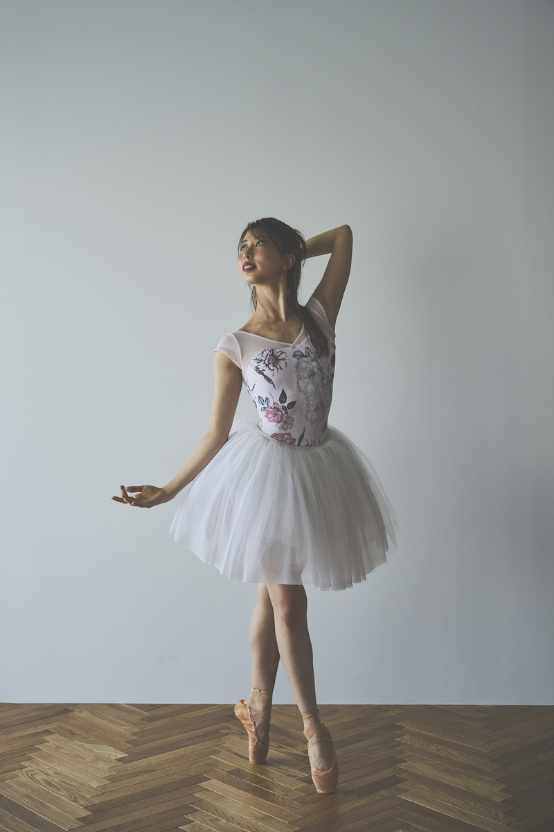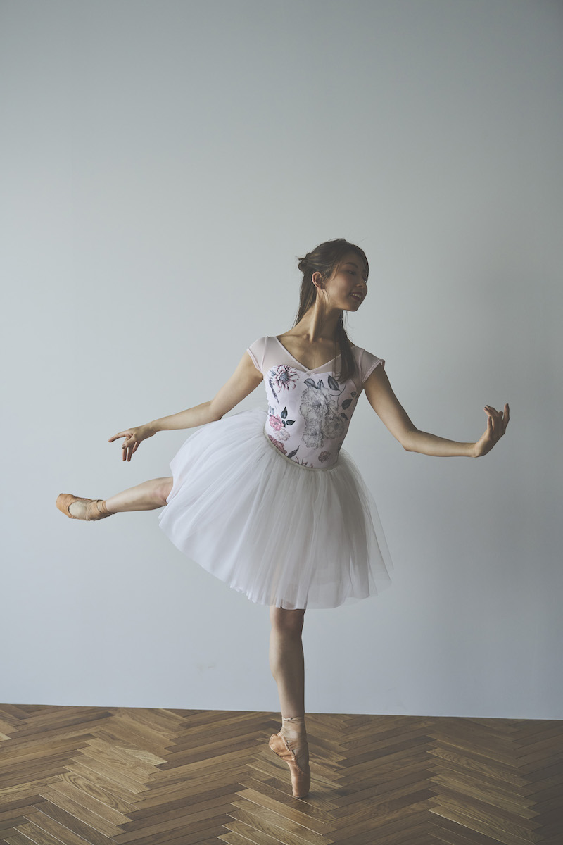 ライトピンクのベースは肌を明るく見せ、柔らかな魅力と心ときめく可憐さを纏うレオタード。