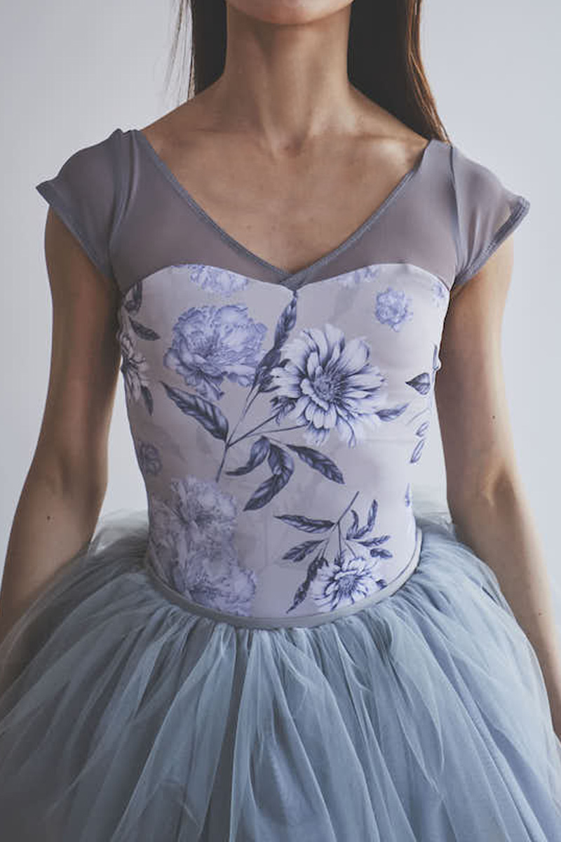 グレージュのベースに濃淡のあるグレーのお花が静かに咲き、上品で洗練された印象に。