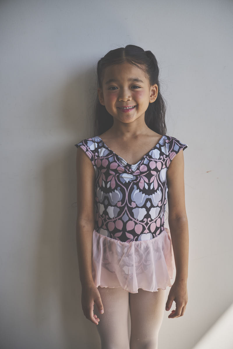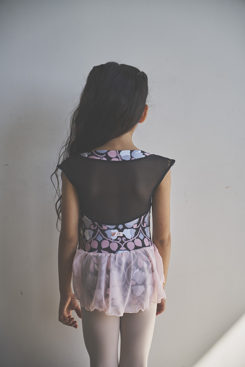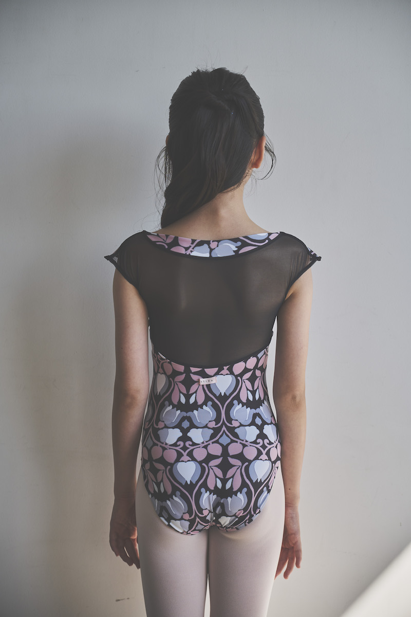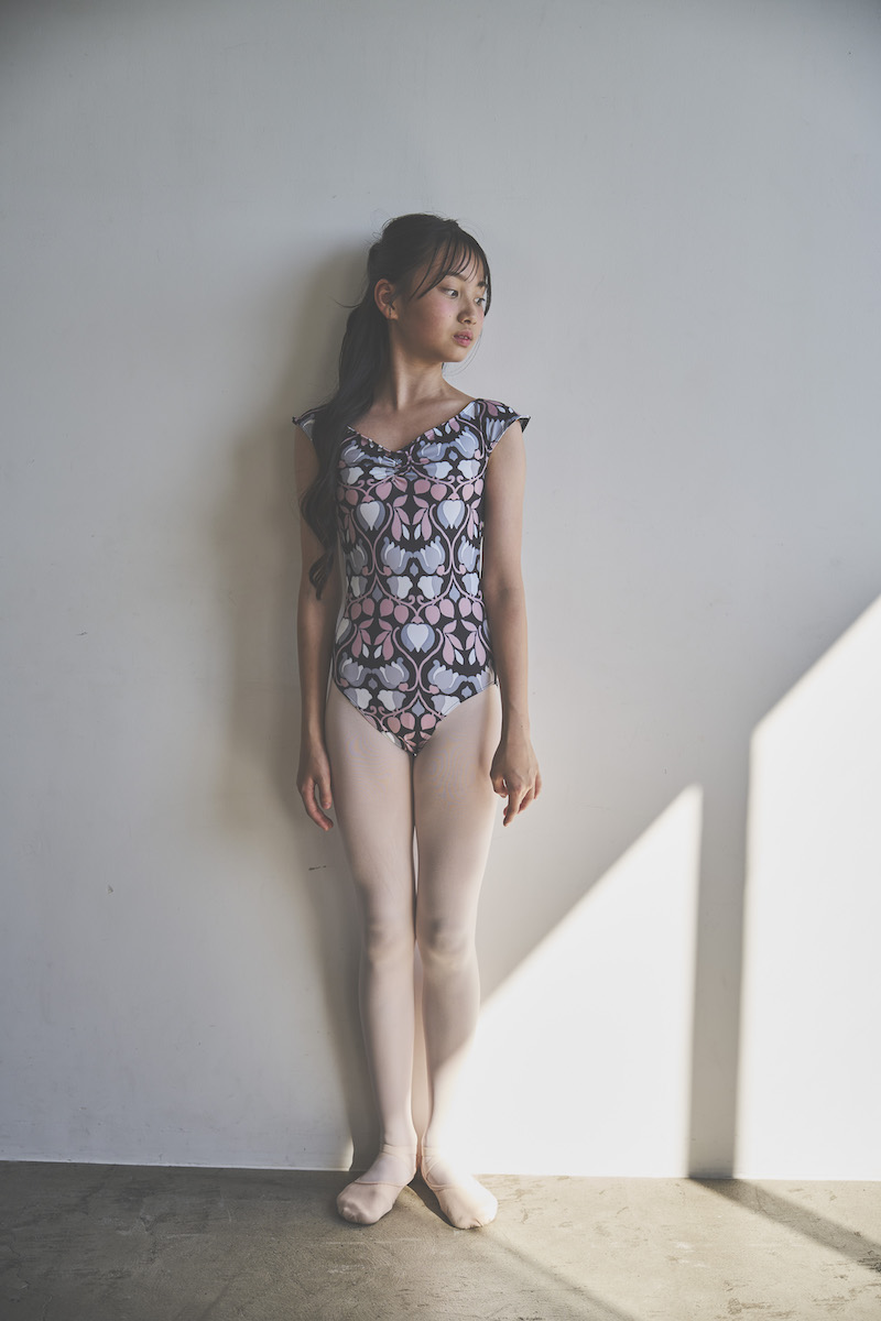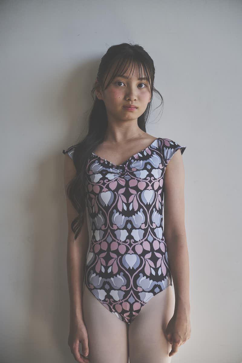 胸元に入ったギャザーがデコルテを華やかに美しく見せてくれるように追求したレオタード。