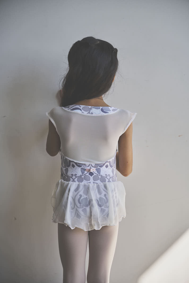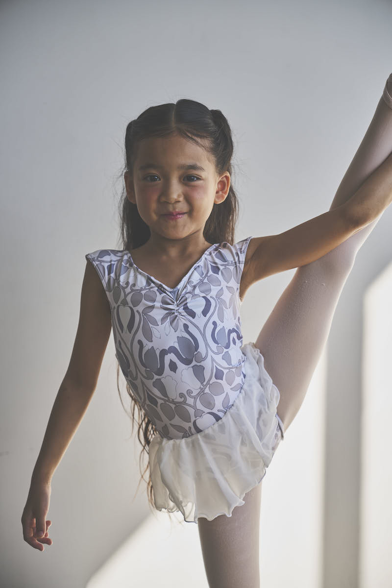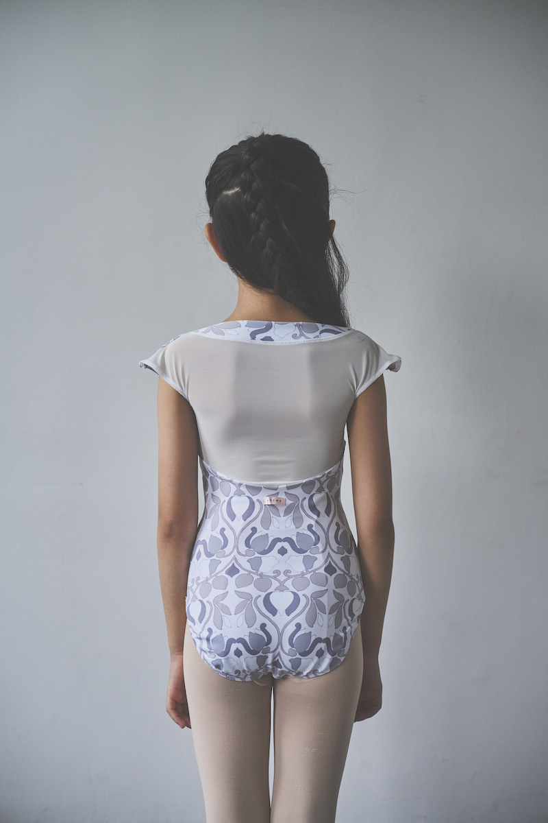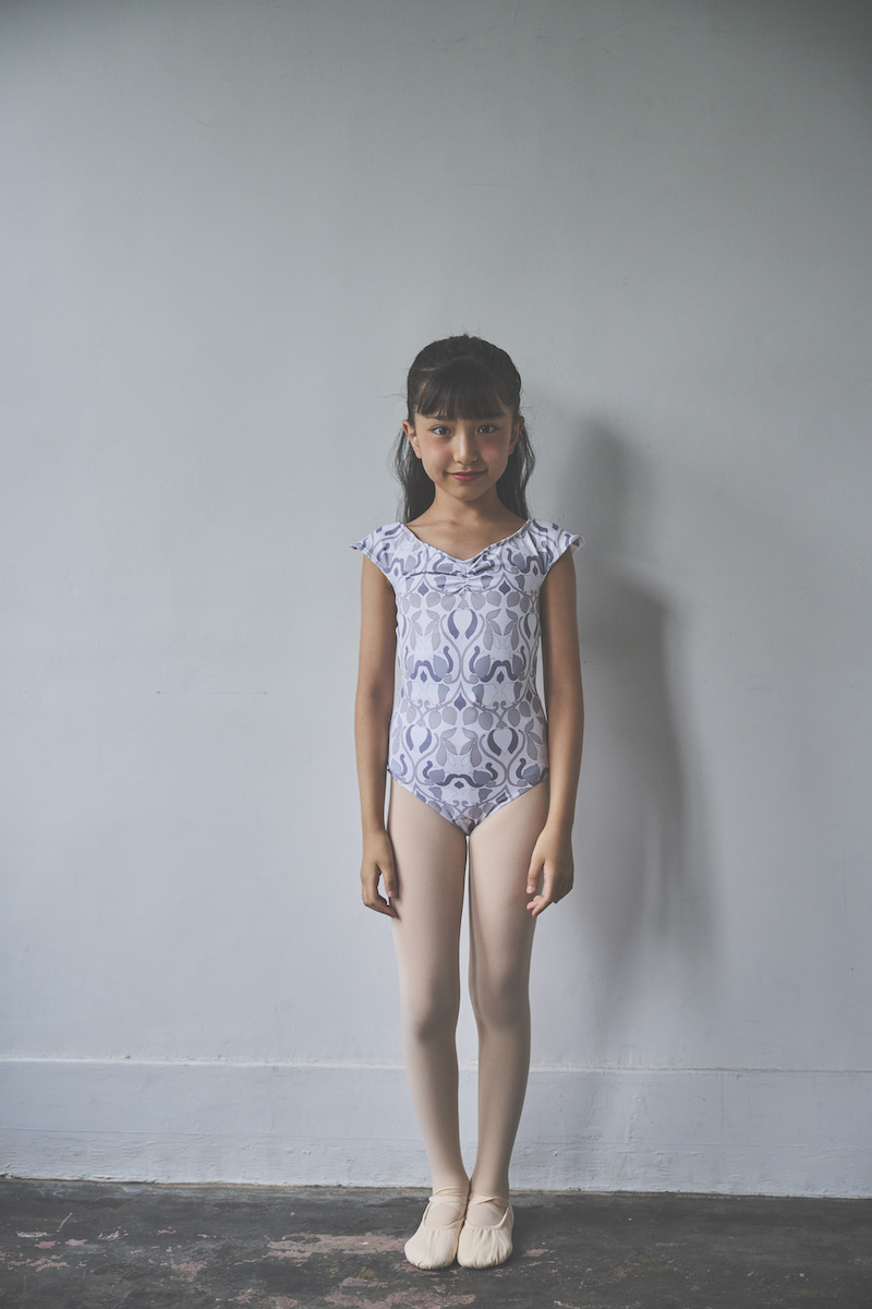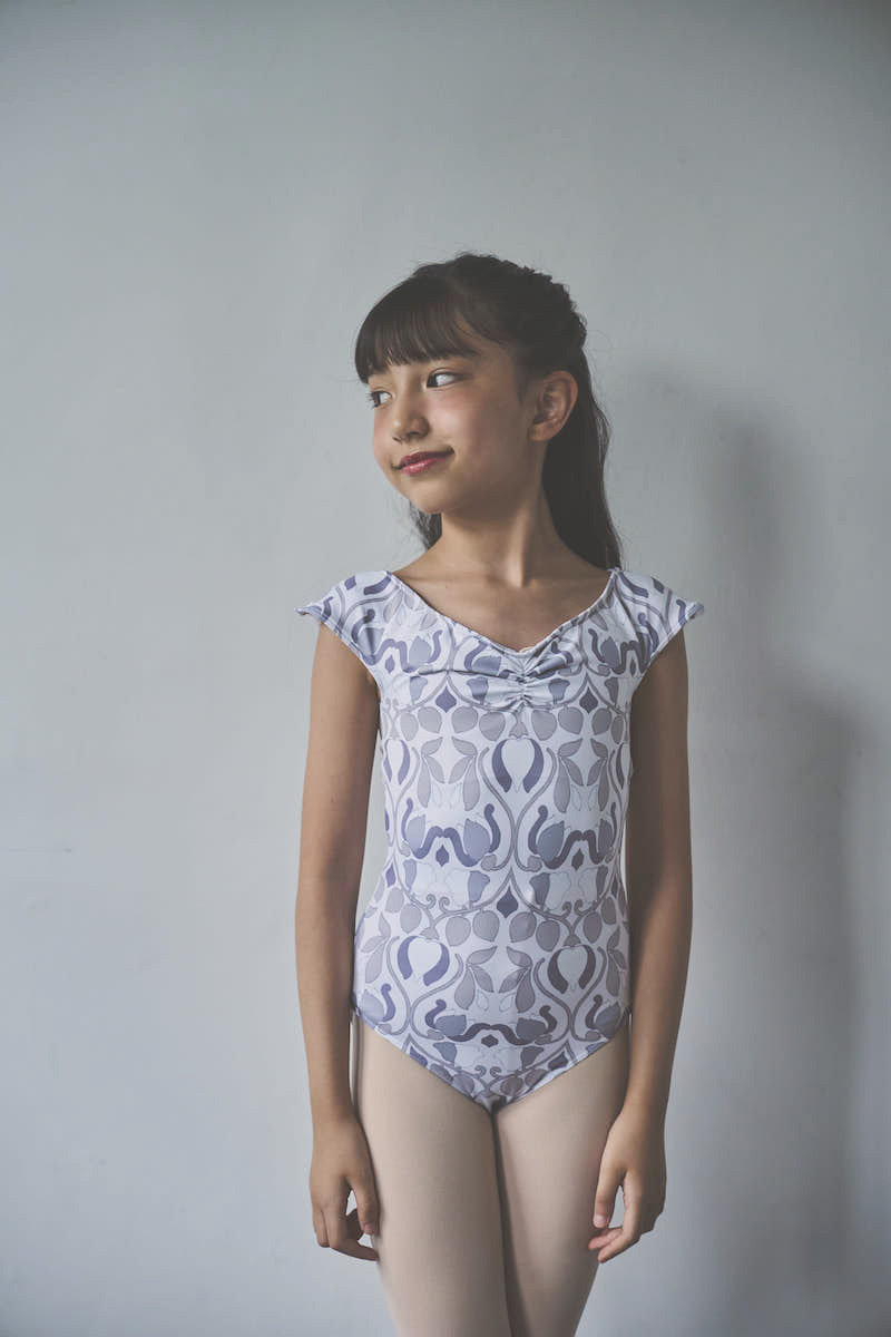 胸元に入ったギャザーがデコルテを華やかに美しく見せてくれるように追求したレオタード。