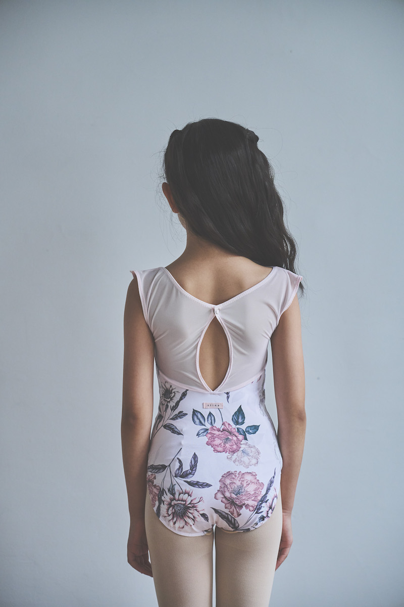 ライトピンクのベースは肌を明るく見せ、柔らかな魅力と心ときめく可憐さを纏うレオタード。