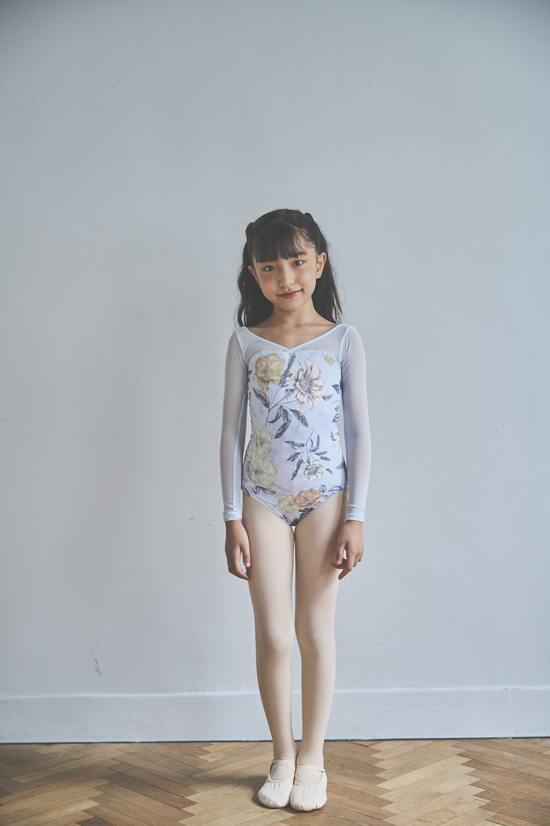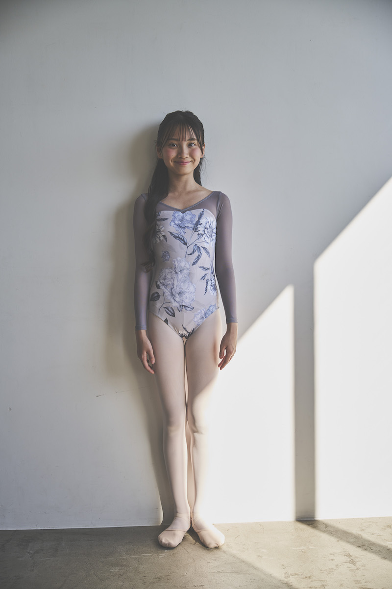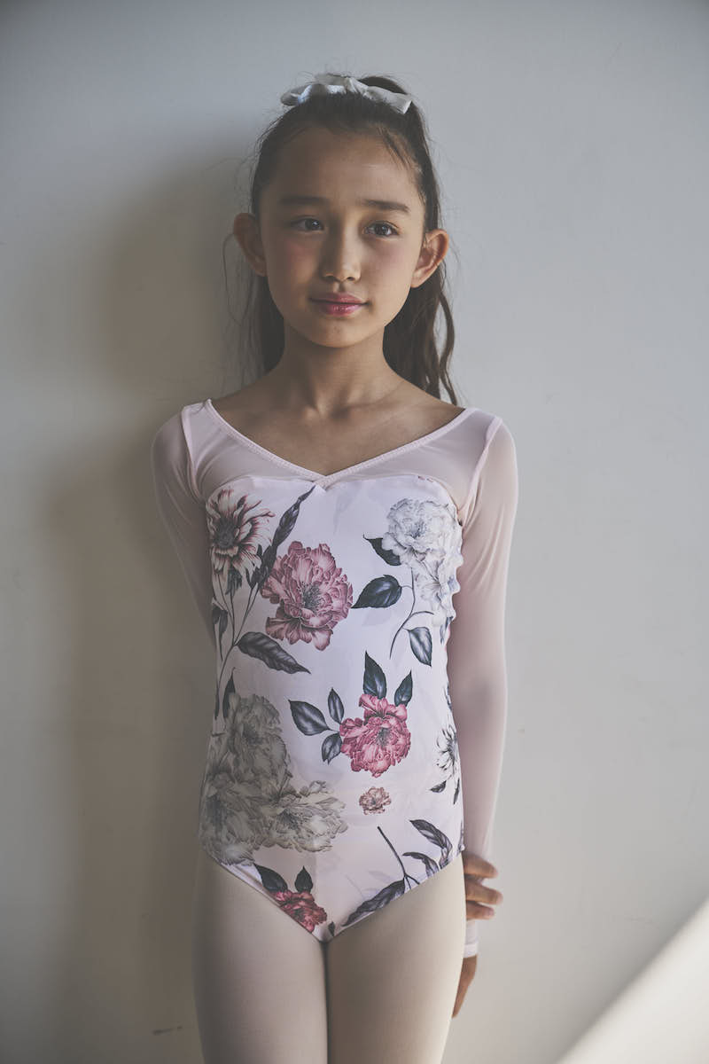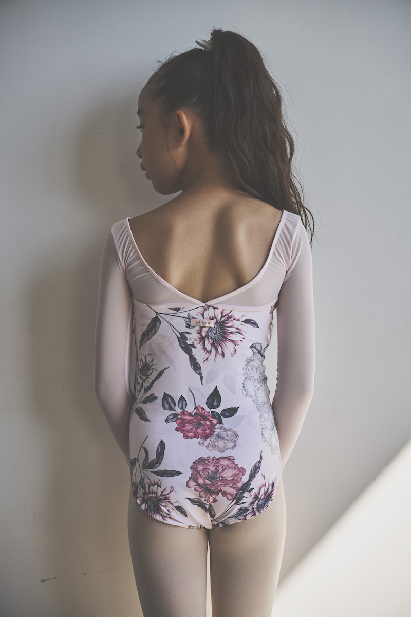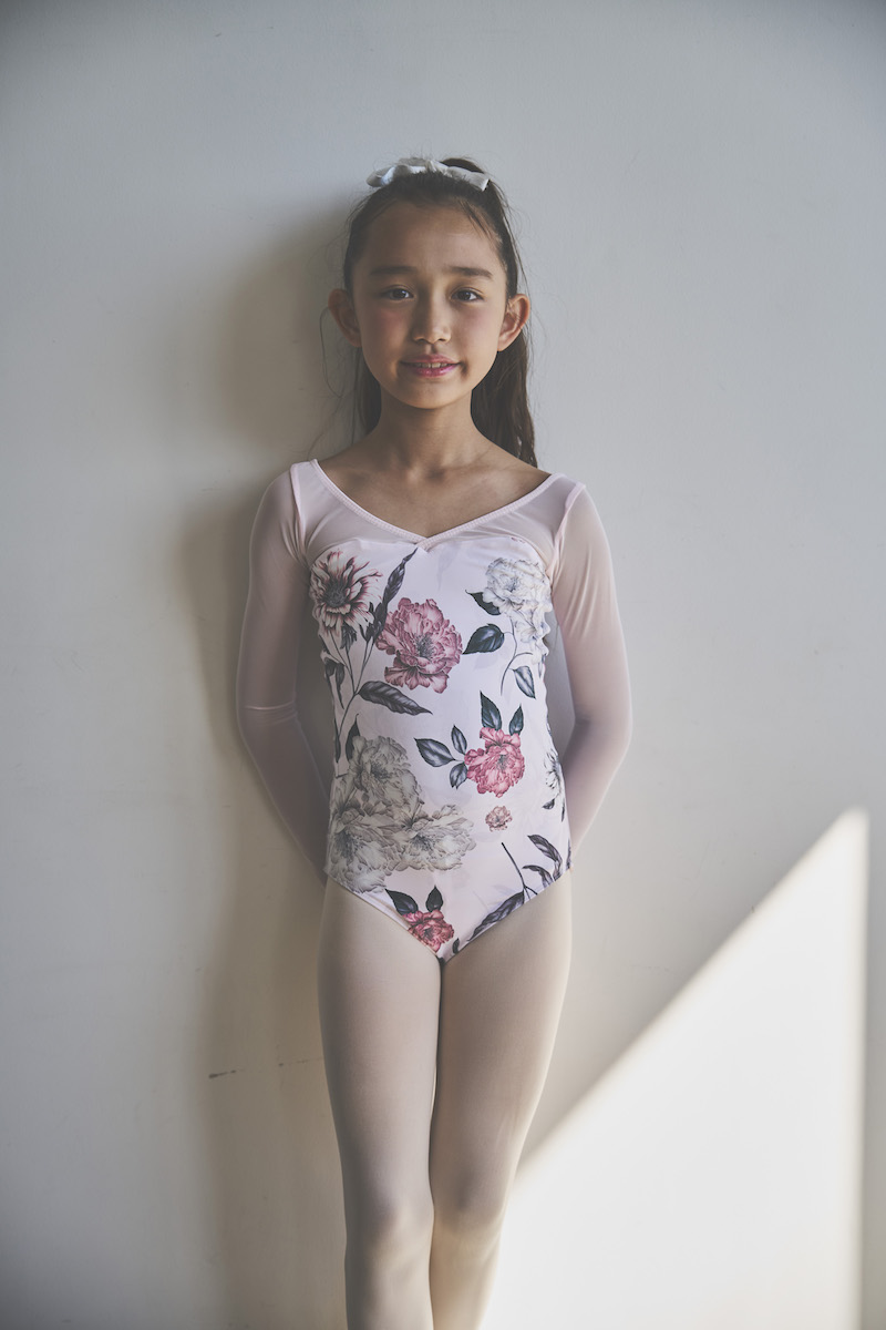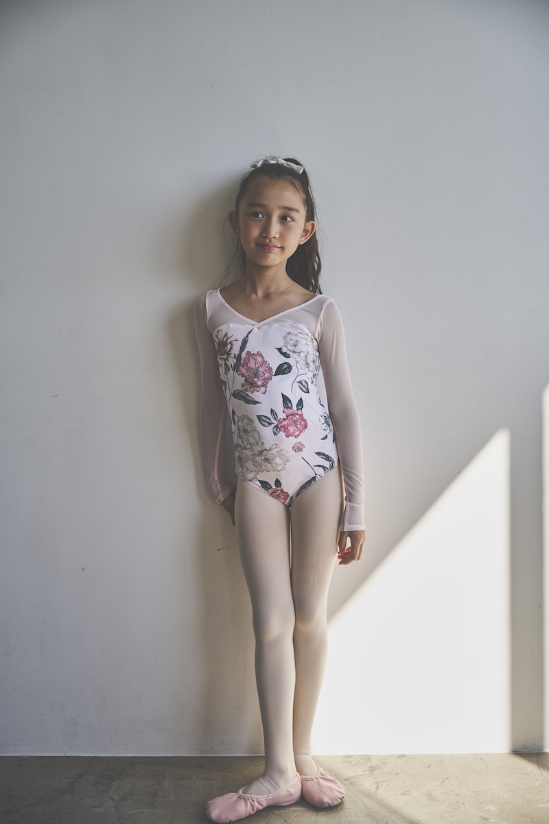 ライトピンクのベースは肌を明るく見せ、柔らかな魅力と心ときめく可憐さを纏うレオタード。