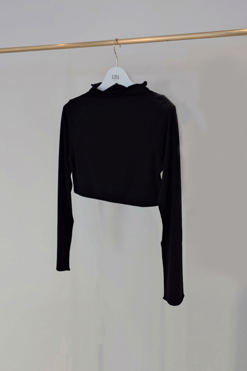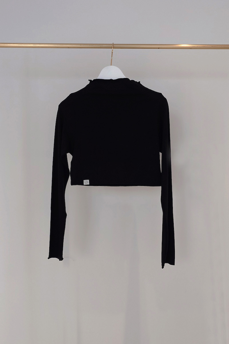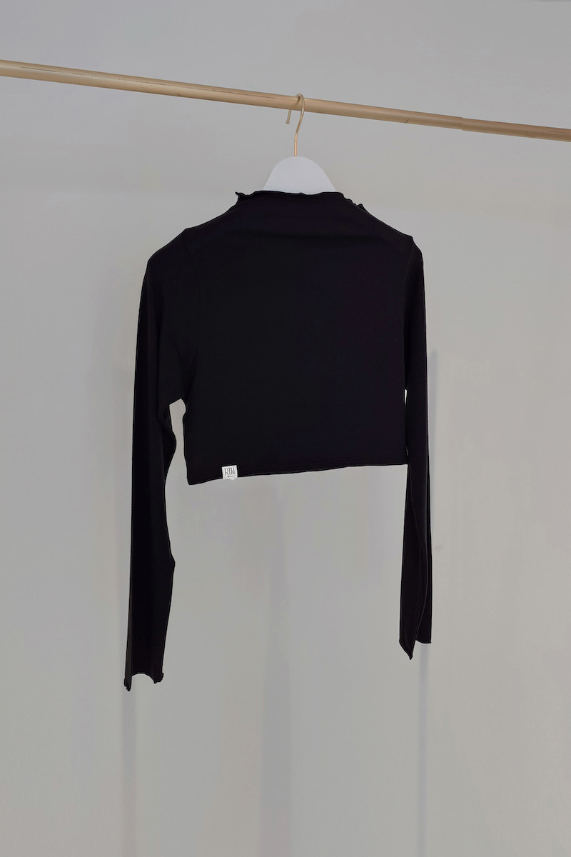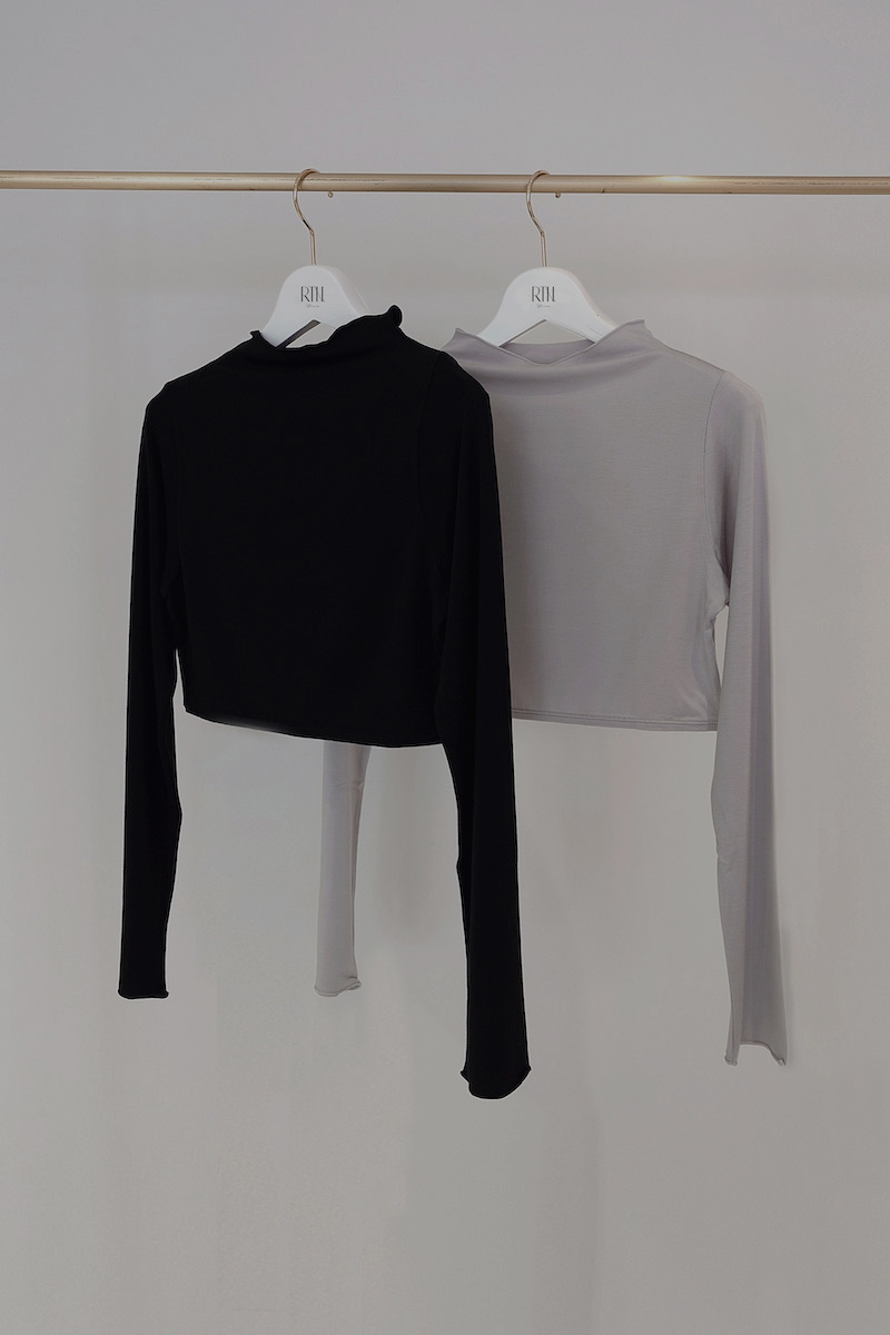 クロップド丈のバランスが美しく、レオタードやパンツとのレイヤードにも最適。