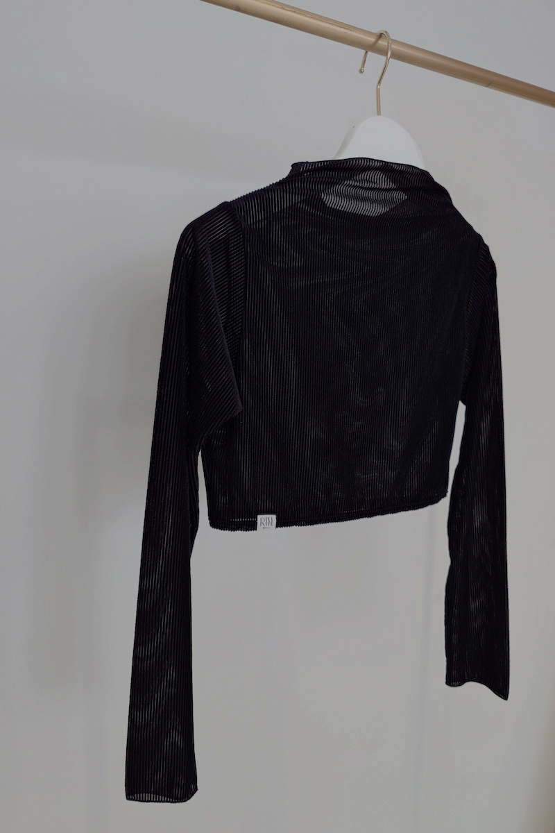 クロップド丈でバランスの取れたシルエットを演出し、動きに合わせて表情を変える一枚。