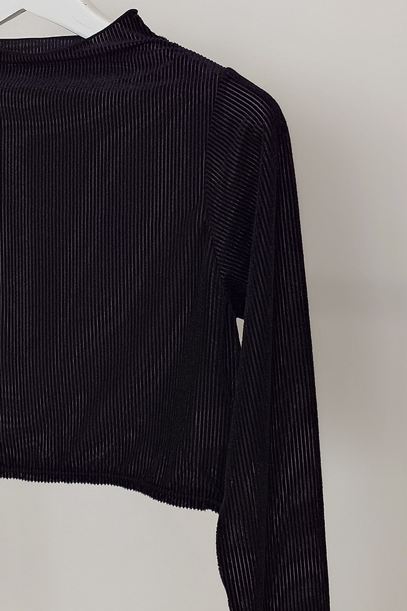 繊細な光沢と透け感が美しい、ストライプベロアトップス。