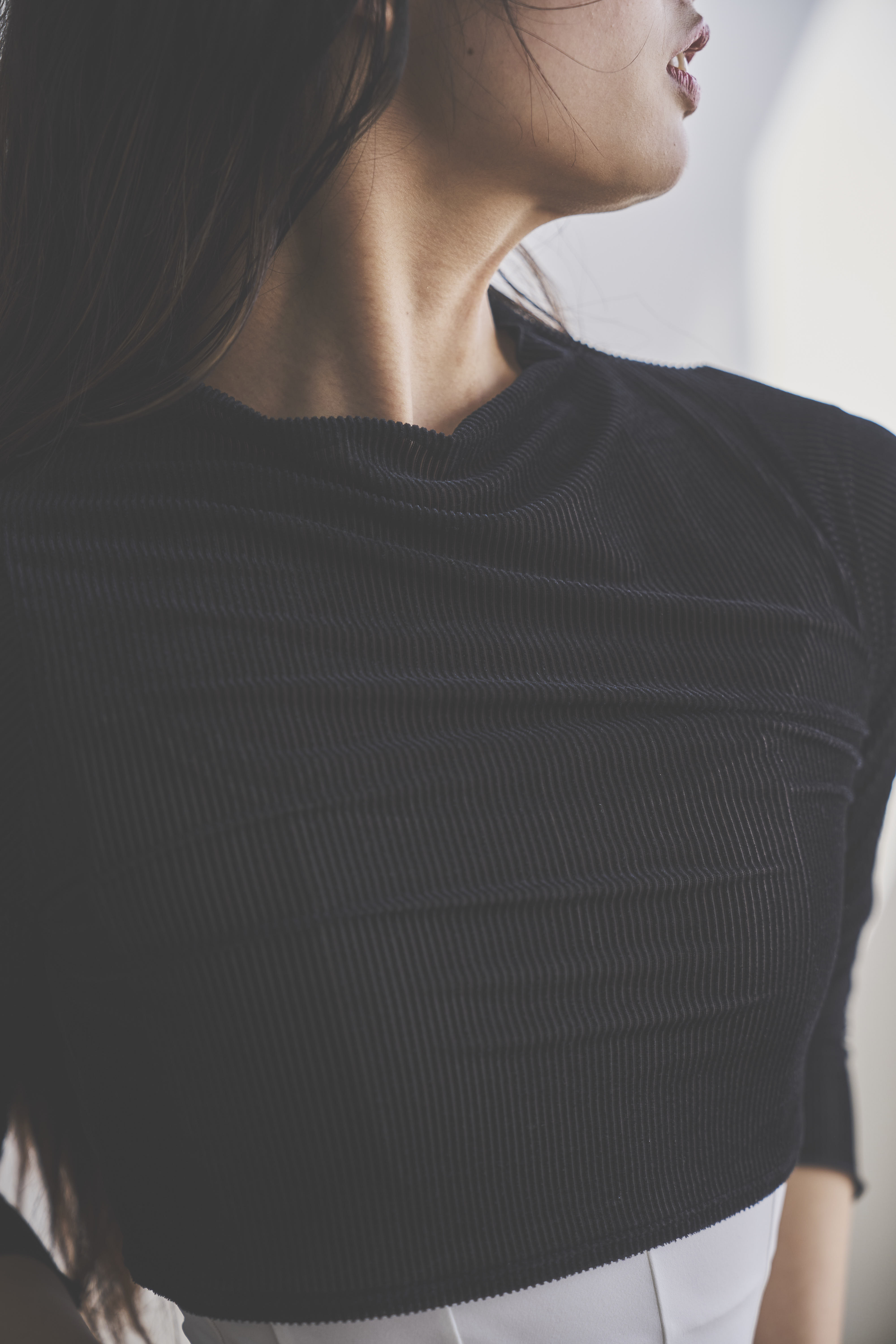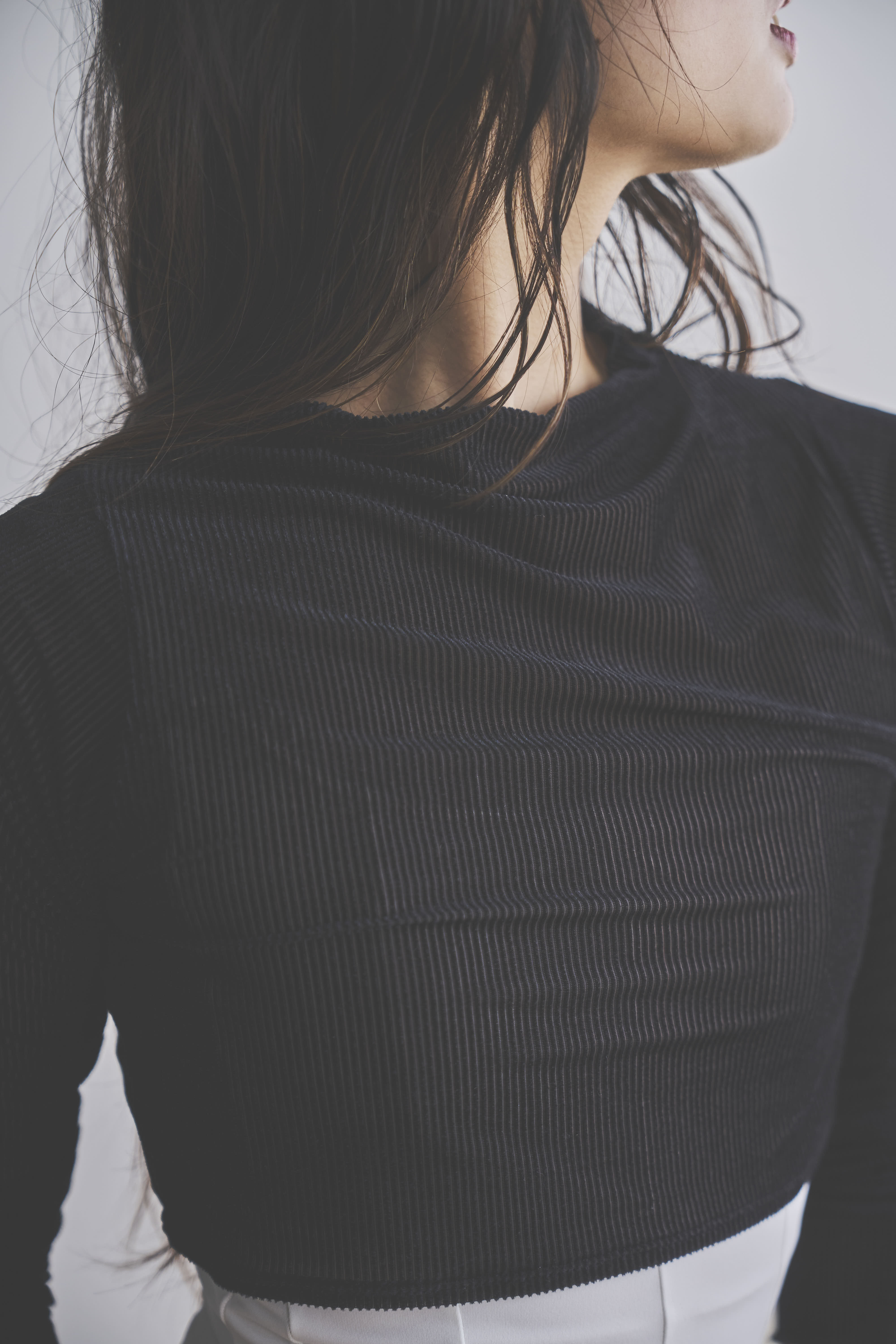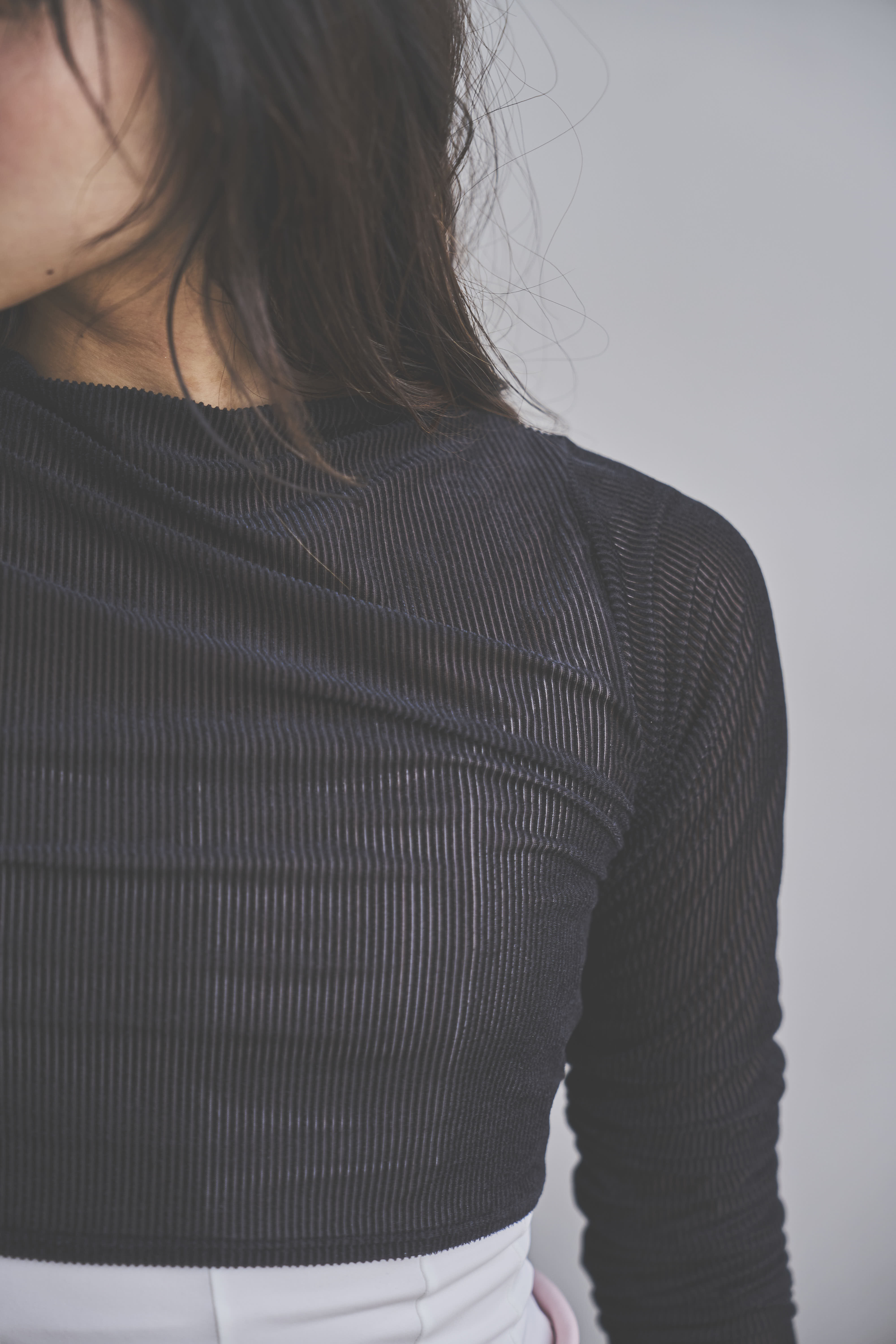 柔らかく伸びる素材が身体に寄り添い、レイヤードスタイルにも最適。