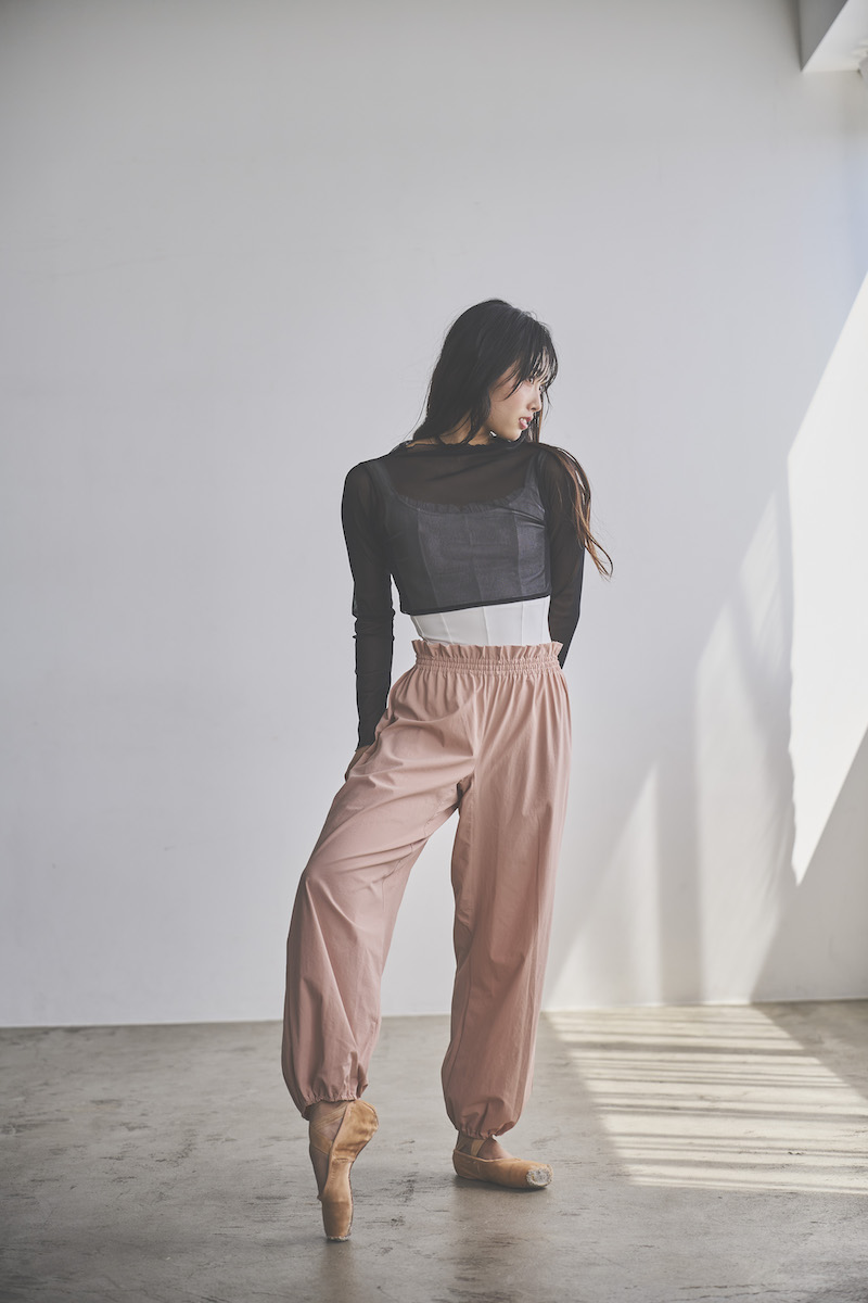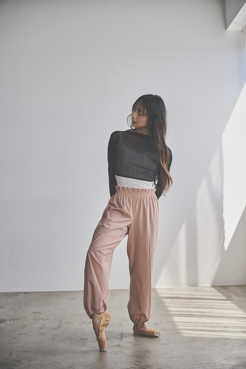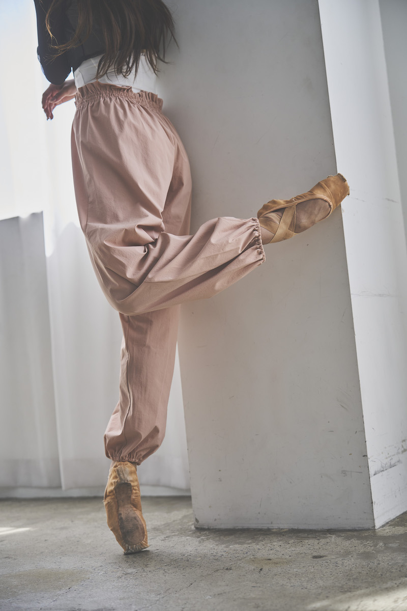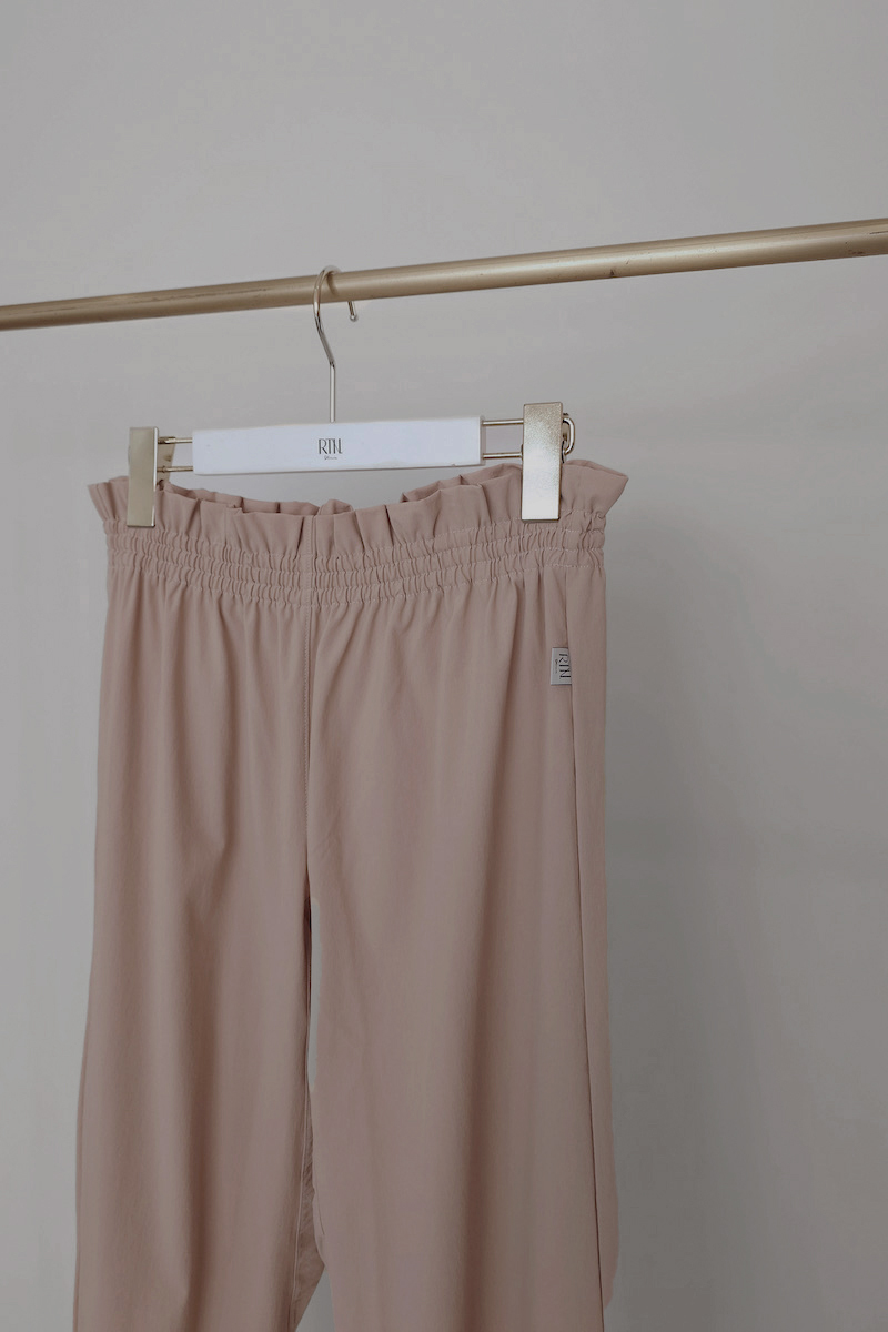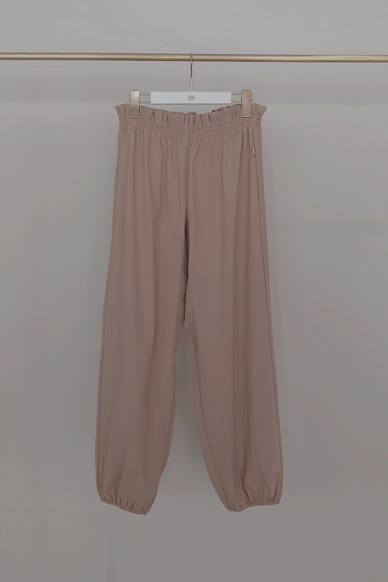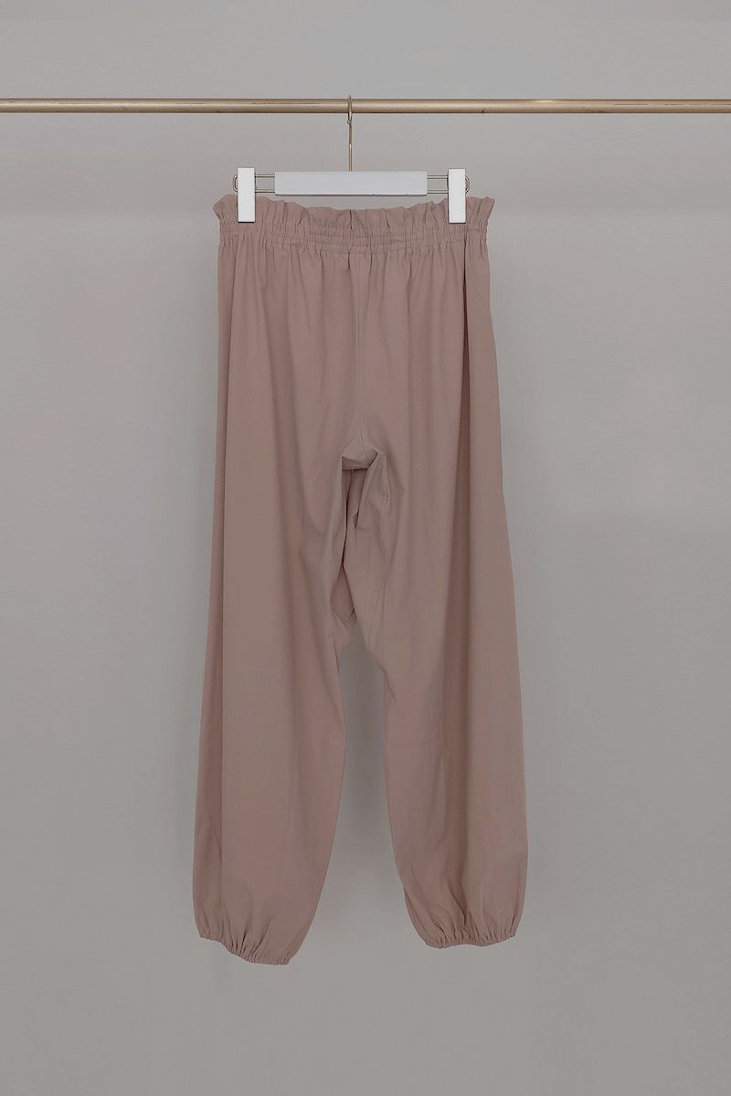 ウエストと裾はゴム仕様で、リラックスしながらも美しいシルエットをキープ。