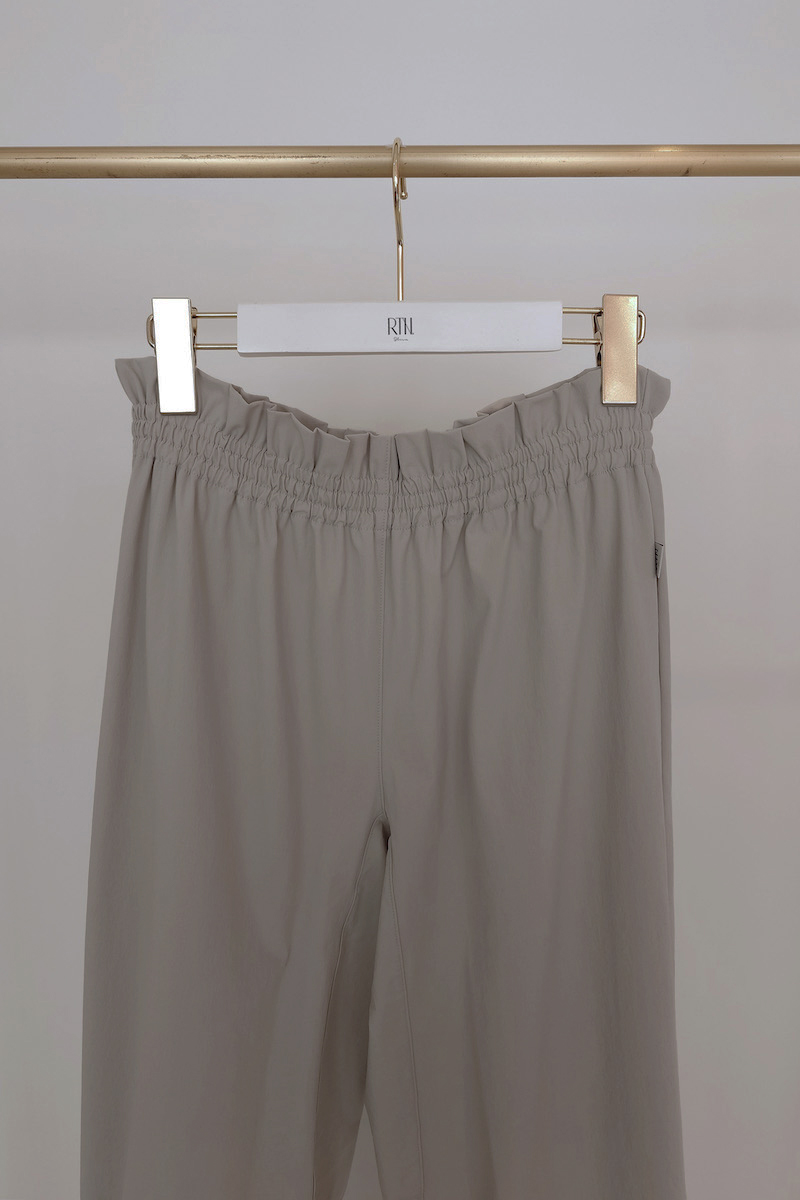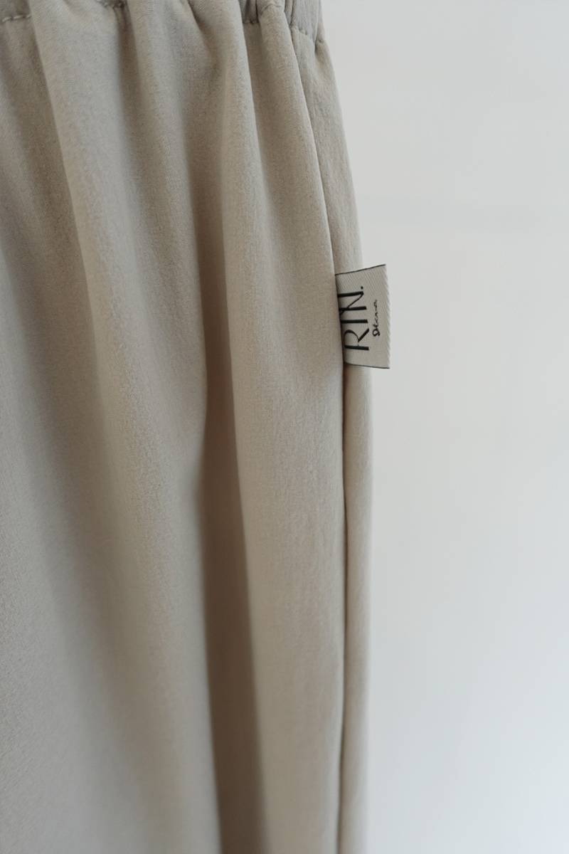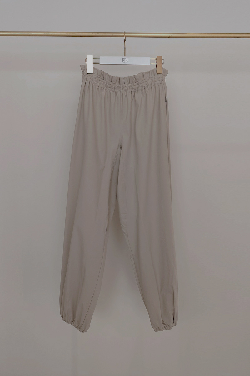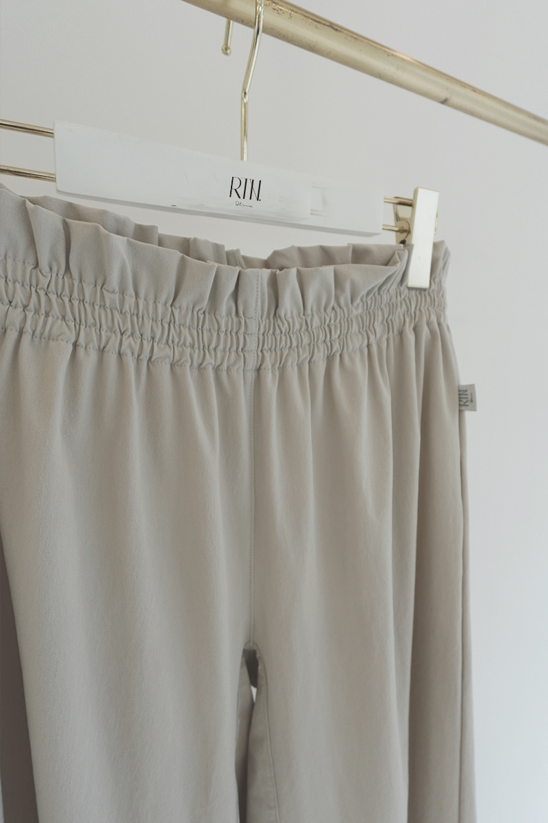 ウエストと裾はゴム仕様で、リラックスしながらも美しいシルエットをキープ。