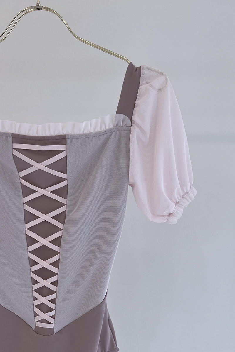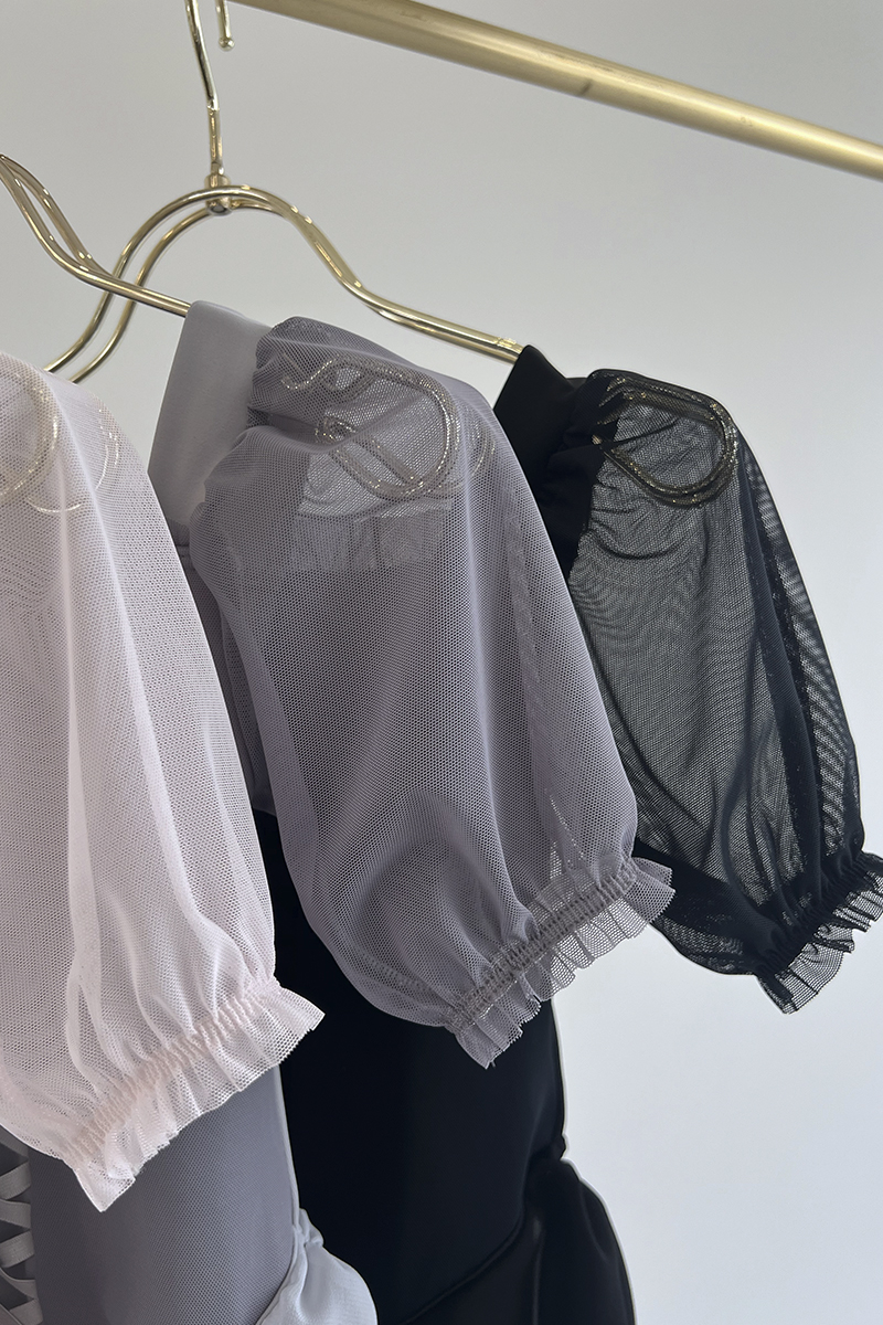 ふんわりとしたパフスリーブは、薄く繊細なパワーネット素材を重ね、