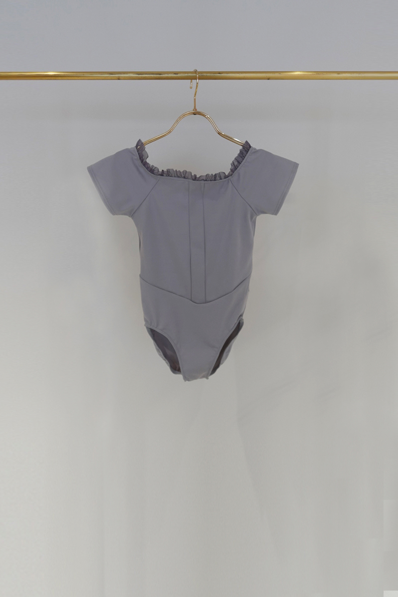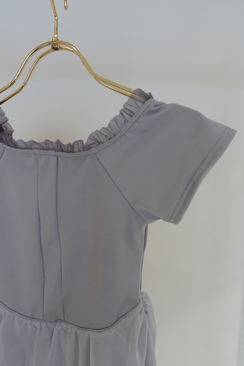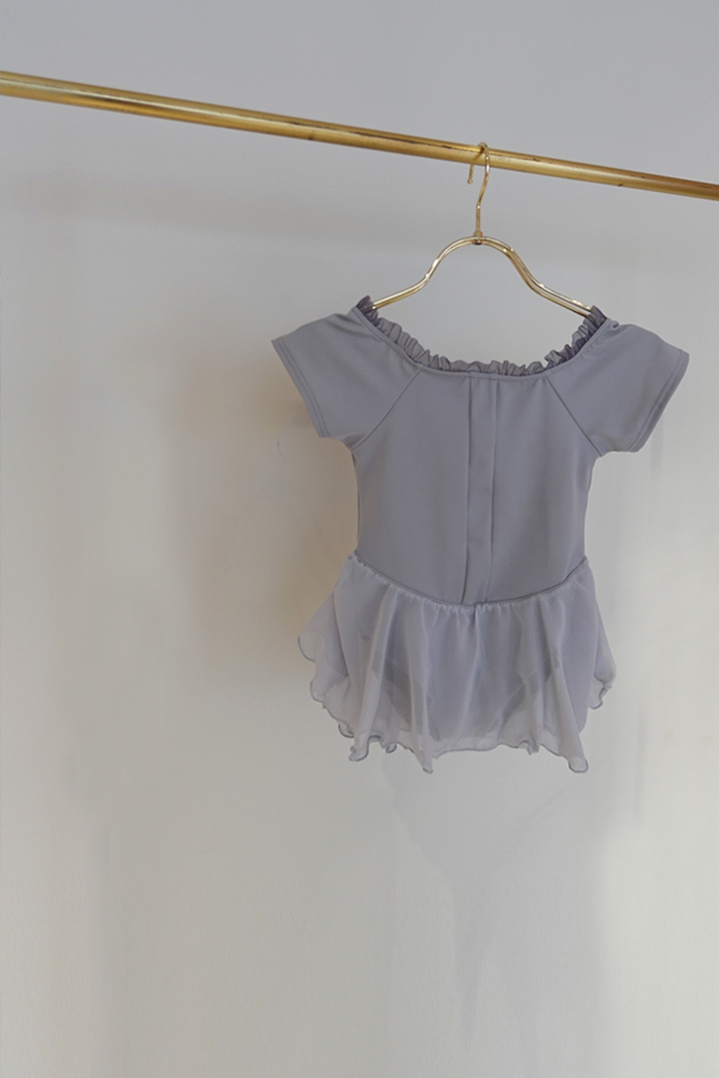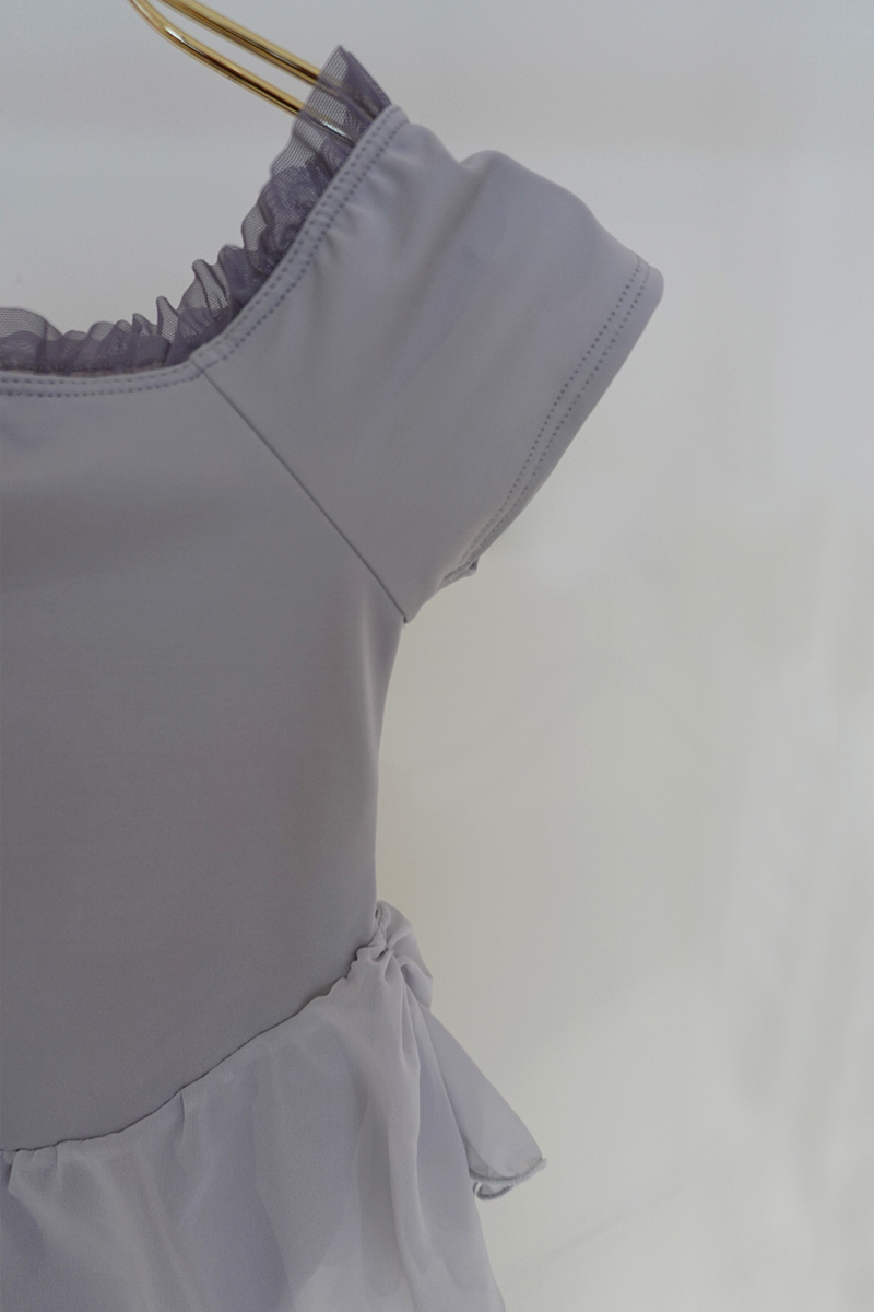 シンプルなラウンドネックにフリルを施し可愛らしさを演出。胸元の切り替えステッチが美しい陰影を生む「Dólce」。