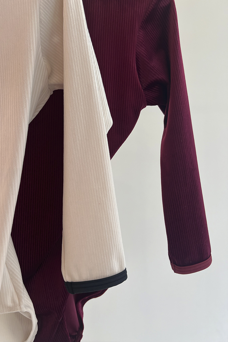 首元と袖に施した配色ディテールは、