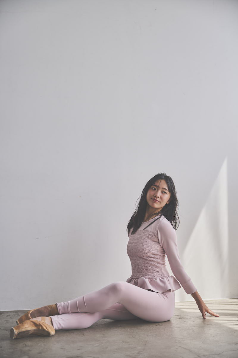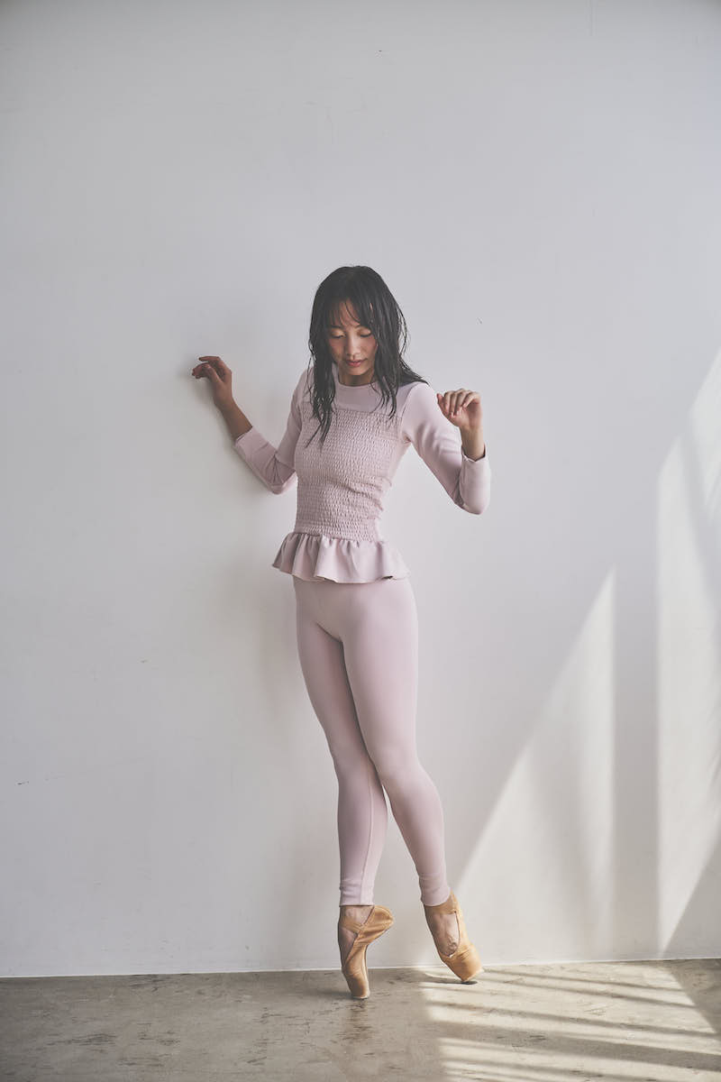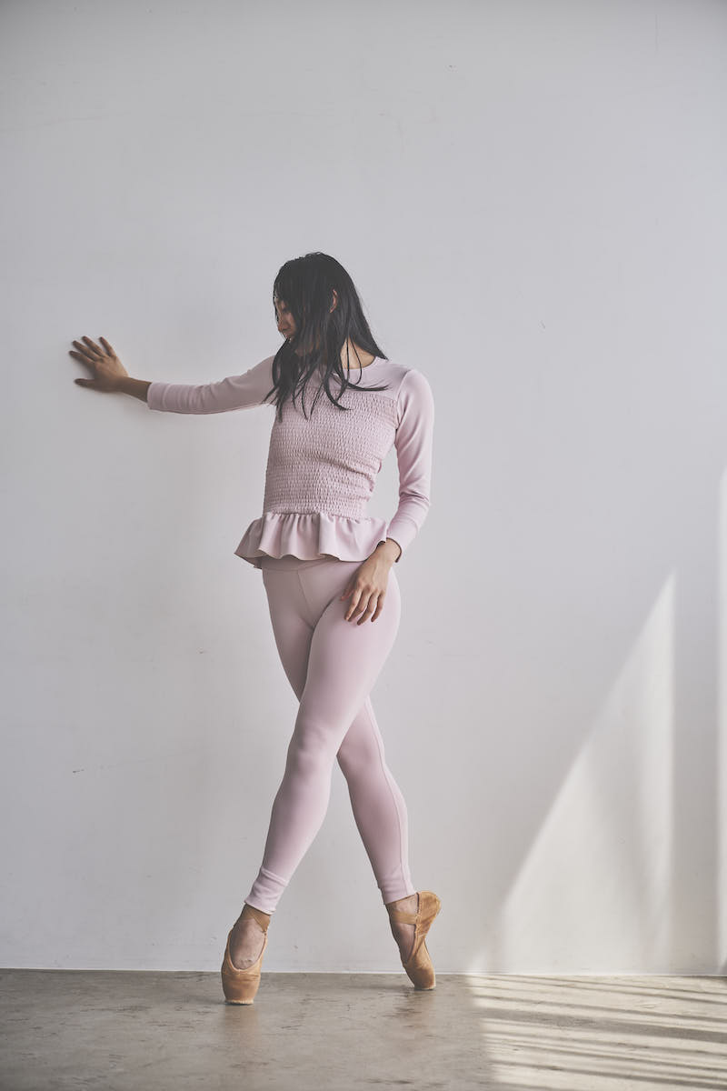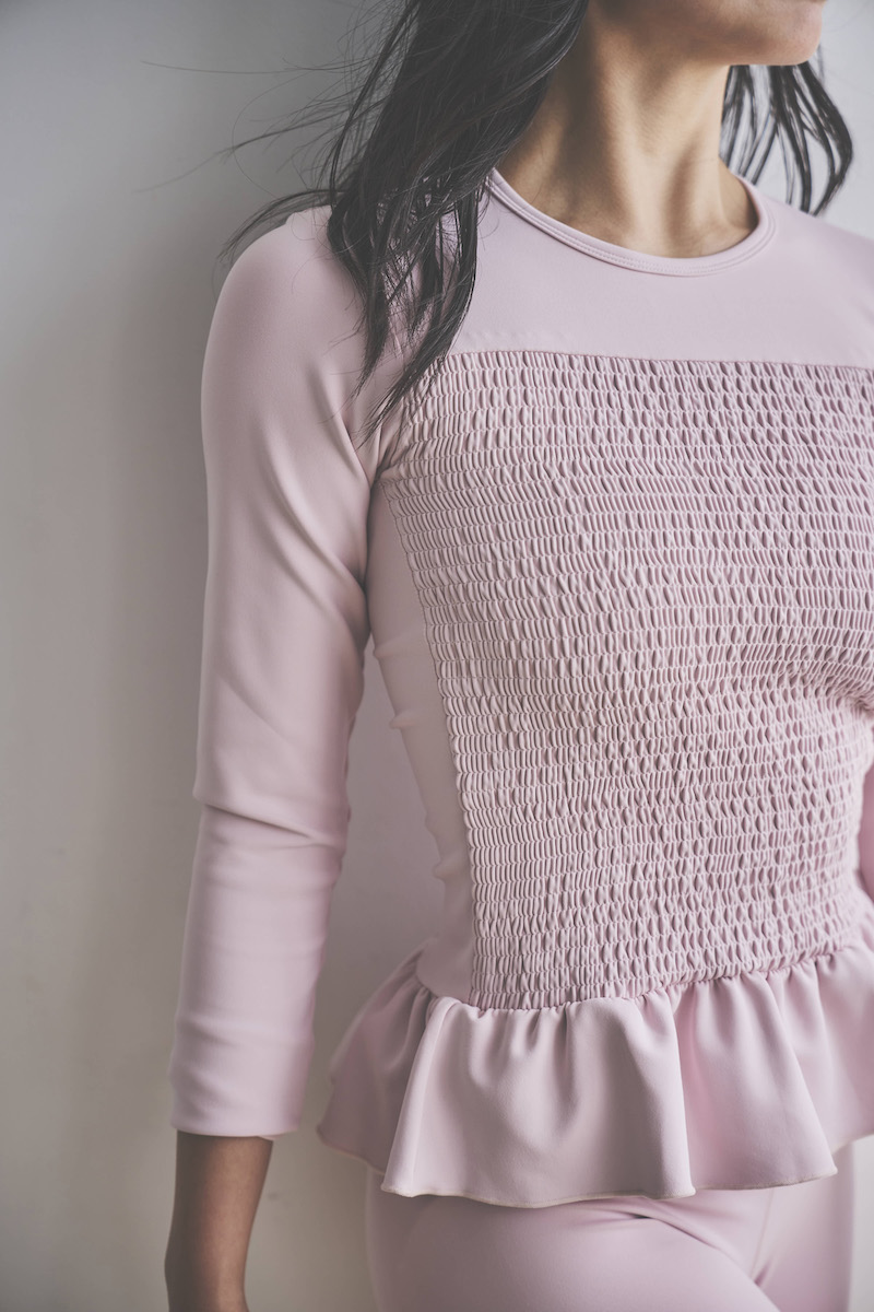 胸元に施した繊細なシャーリングが立体感を生み、肩に軽く入ったタックがふんわりとした丸みのあるシルエットを描きます。