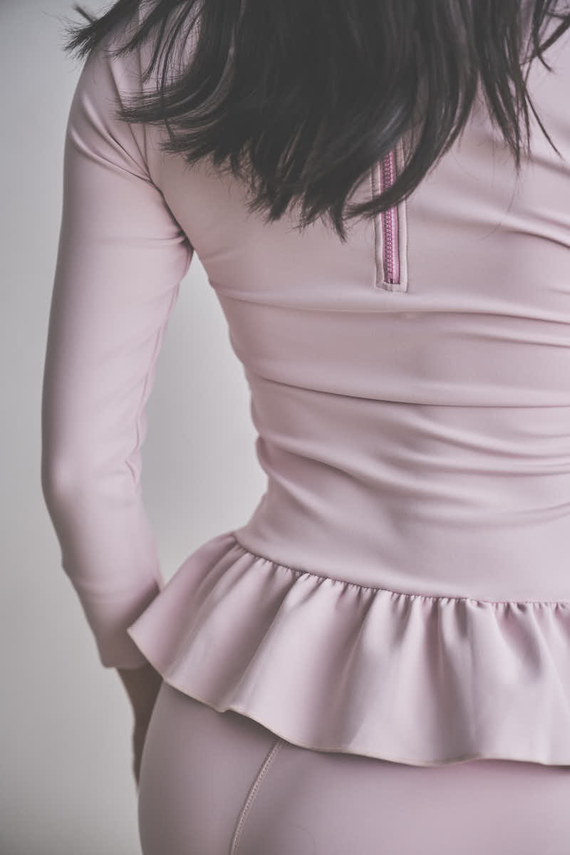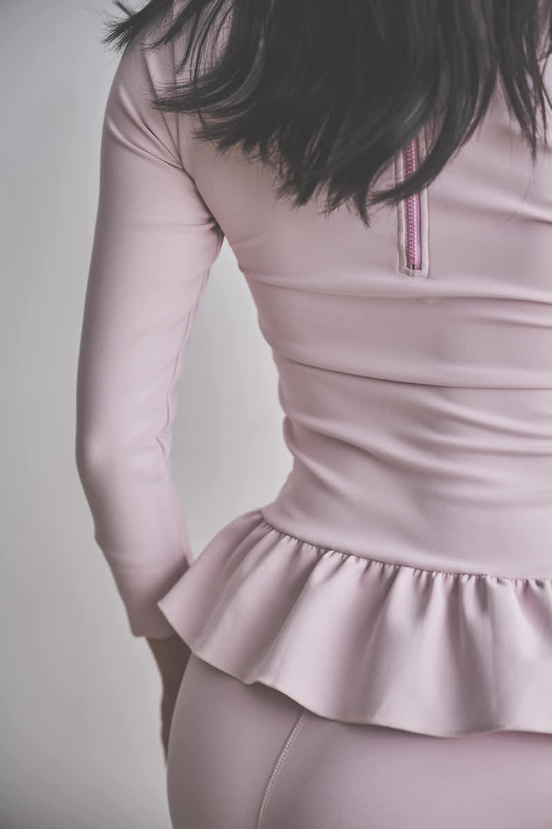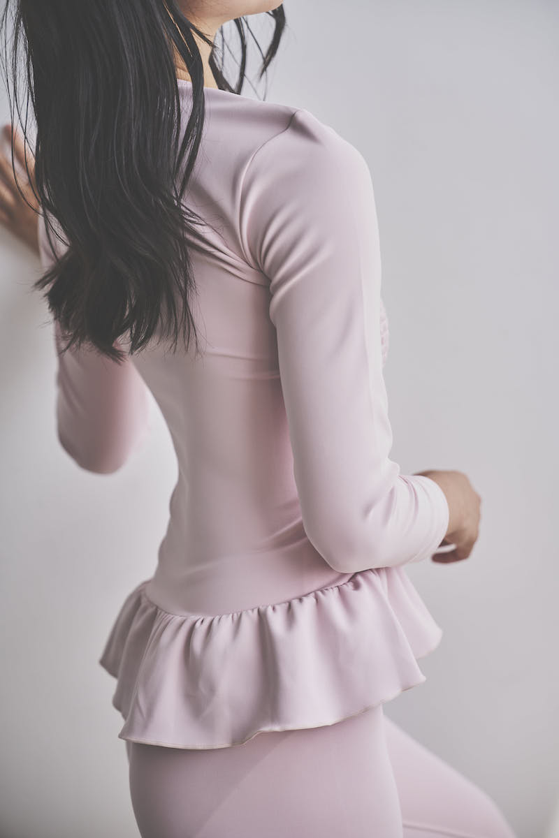 裾にはさりげないフレアラインを取り入れ、コンパクトなトップスシルエットの中に優雅な動きをプラス。