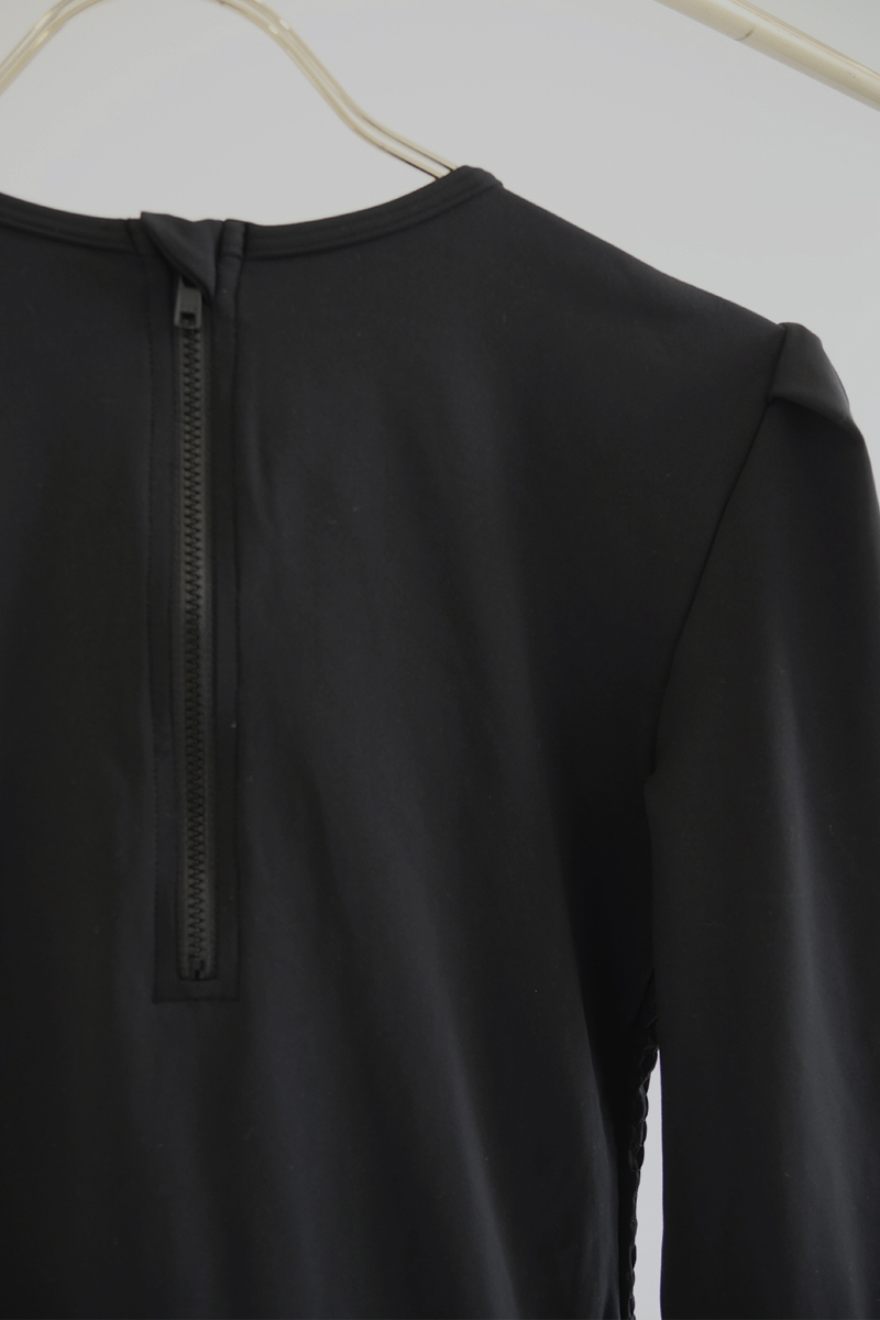 blackは、ラインを引き締めながらも、シャーリングの陰影を際立たせ、胸元の立体感を上品に引き出します。