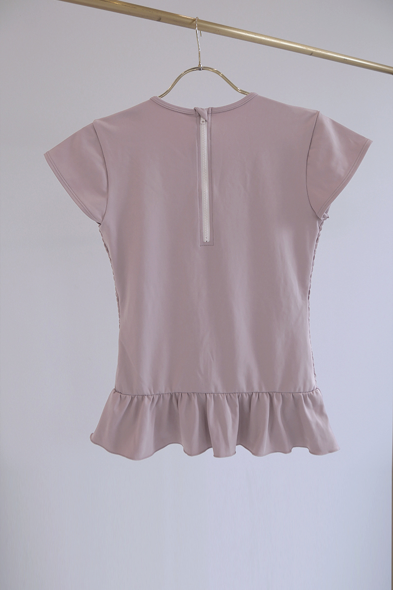 UVカット機能を兼ね備えており、バレエのウォームアップウェアや日常のアクティブシーン、さらにはラッシュガードとしても着用可能な汎用性の高い一枚です。