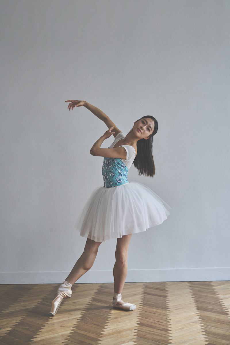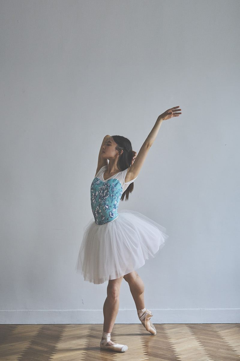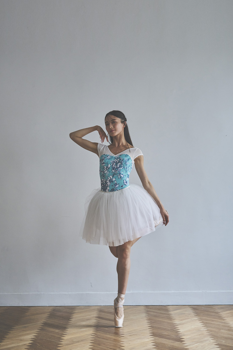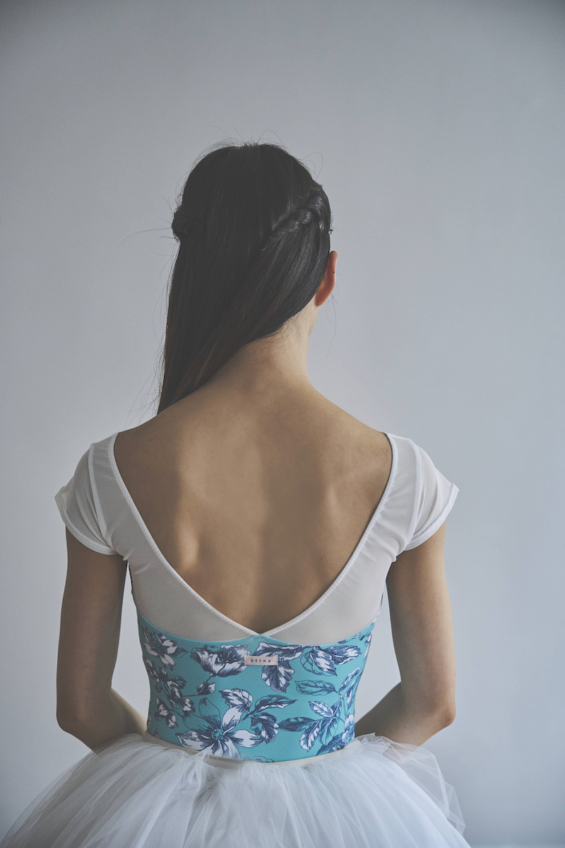 胸元のクロスVがポイントのシンプルな美ラインレオタード。