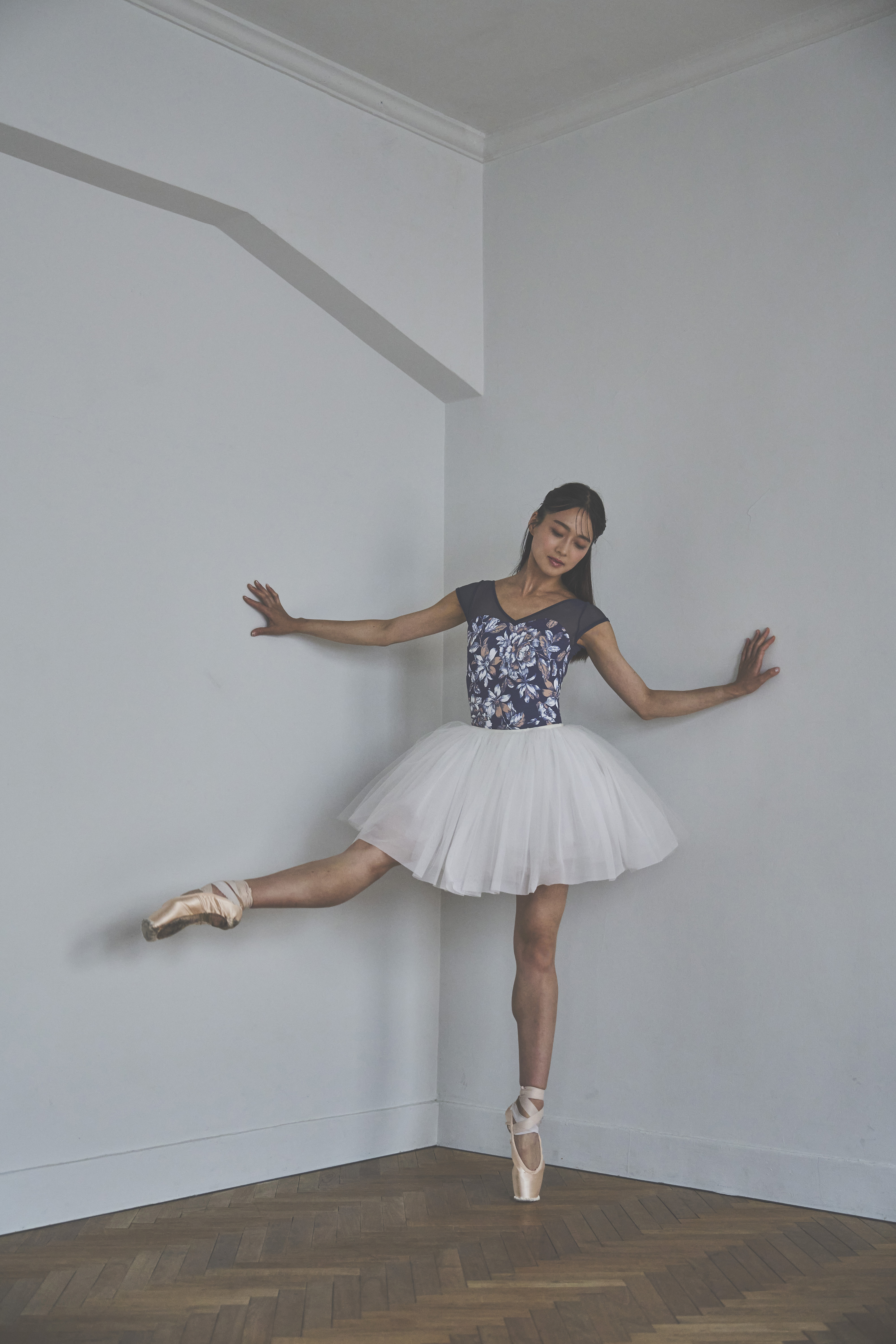 胸元のクロスVがポイントのシンプルな美ラインレオタード。