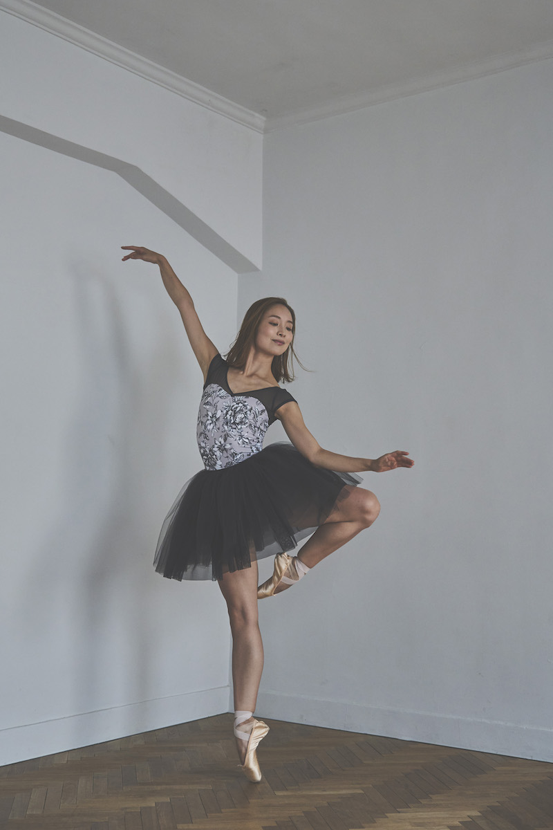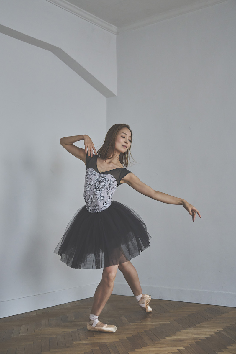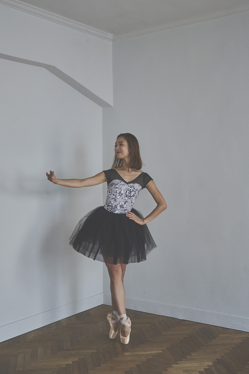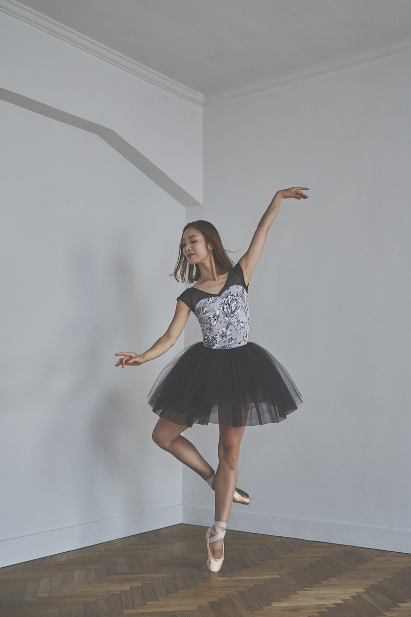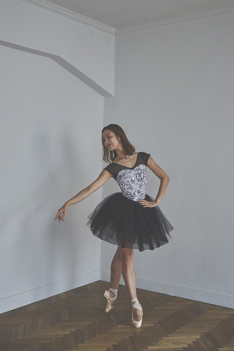 胸元のクロスVがポイントのシンプルな美ラインレオタード。