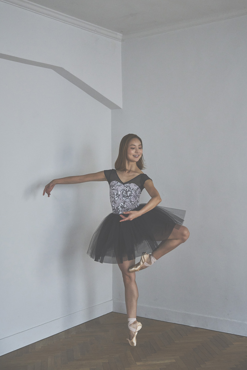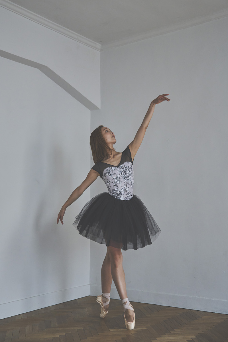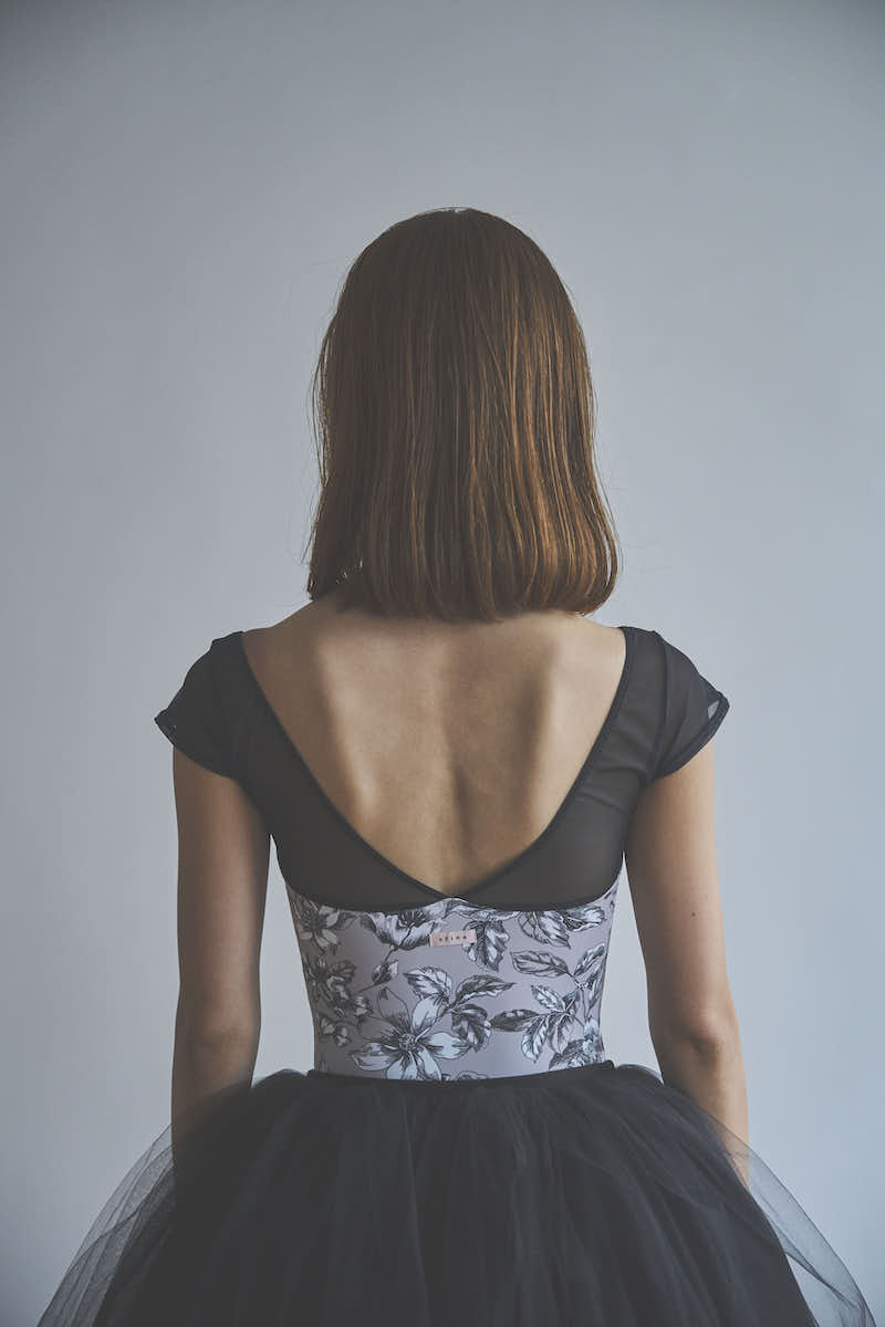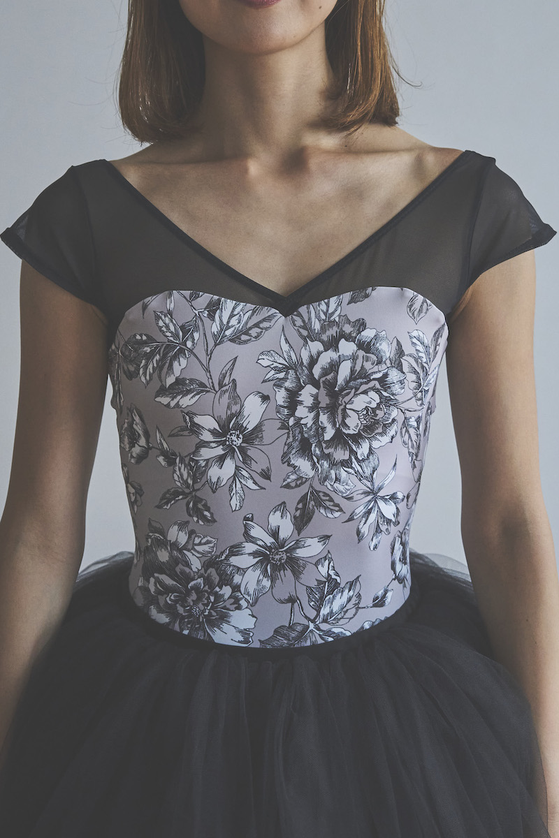 blackのパワーネットが肩まわりをすっきりと引き締め、上品さの中に“モードな表情”を添えています。