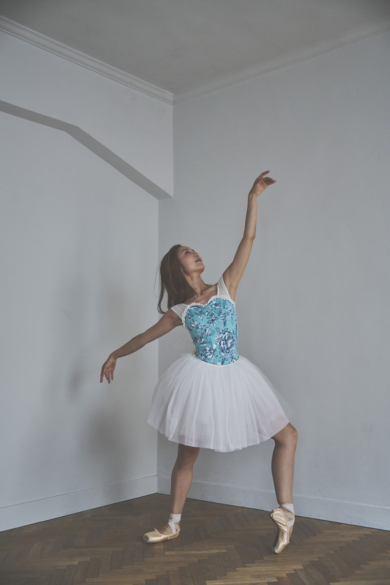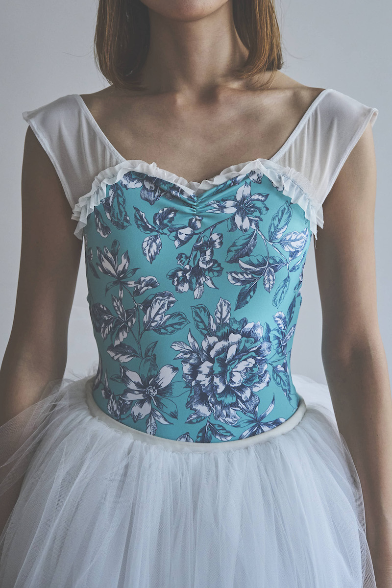 クィーンアンネックで胸元にフリルをあしらい上品かつエアリーな型。