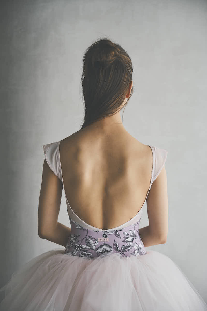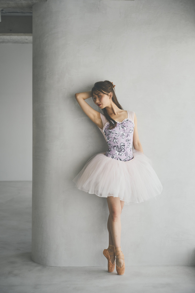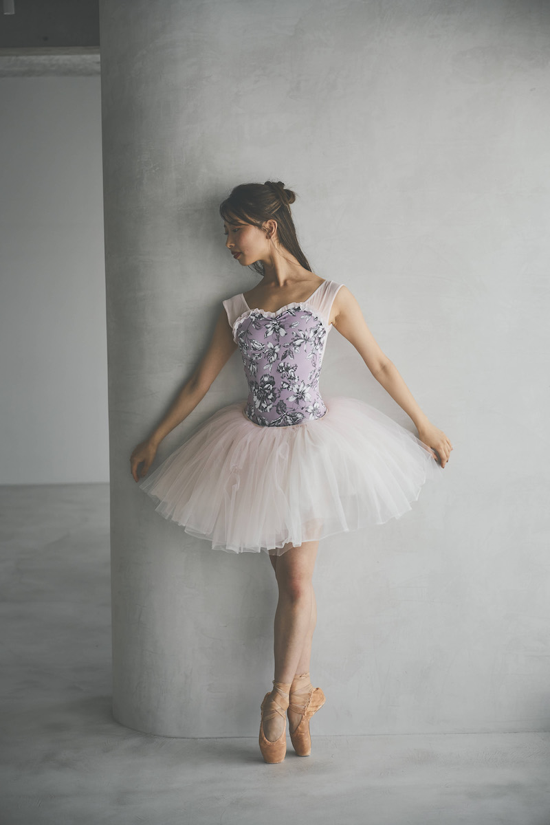 light pinkのパワーネットが柔らかく肌になじみボディラインを優しく見せ、華やかな印象に。