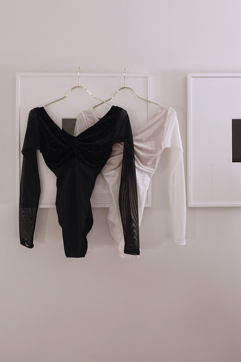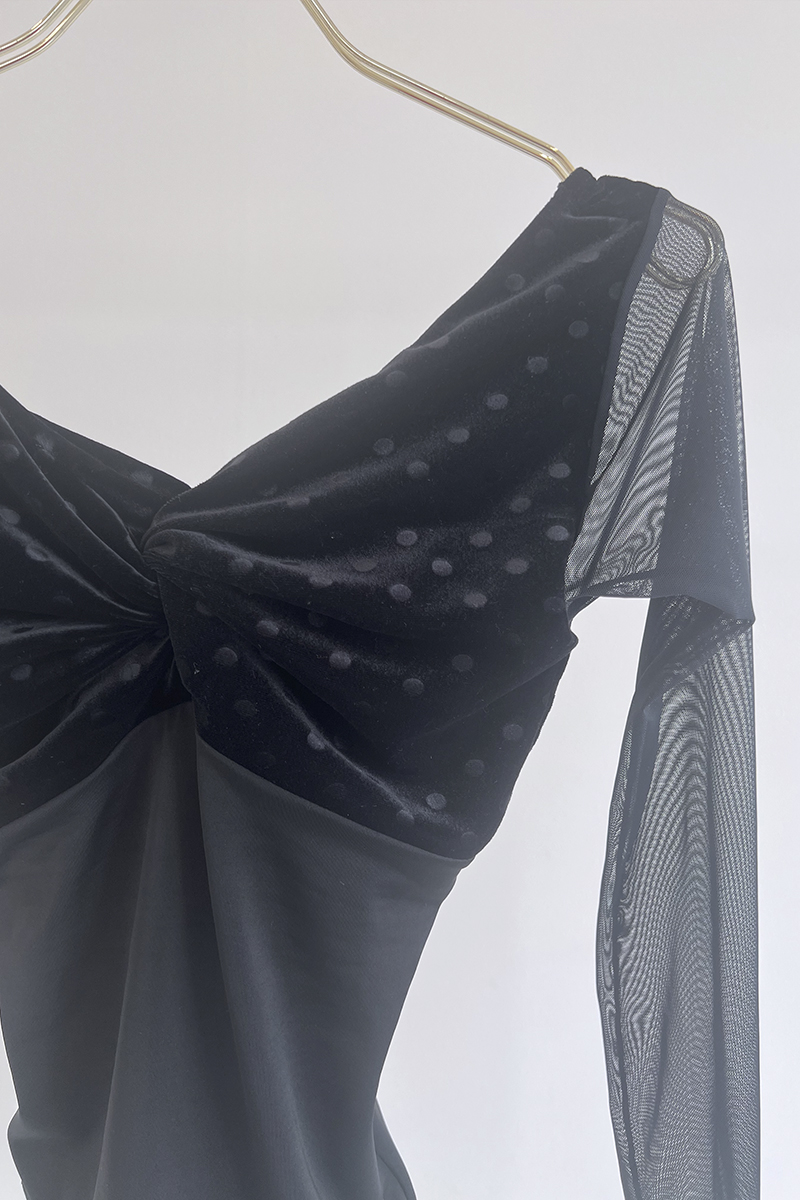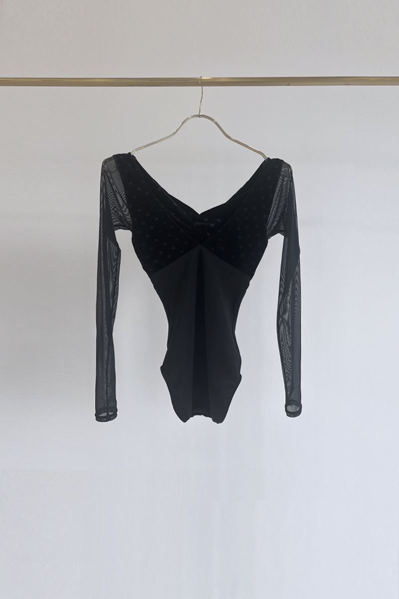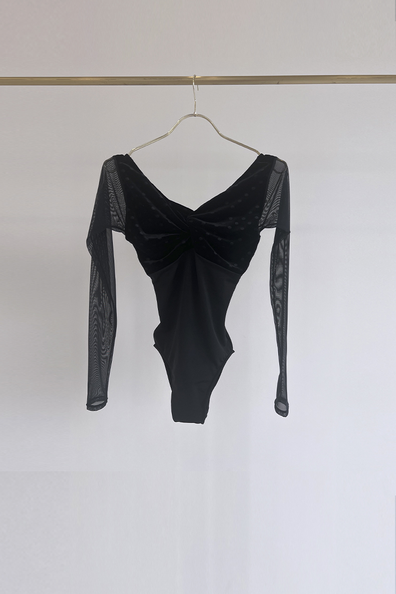 シースルーの長袖が腕まわりを軽やかに包み込み、
