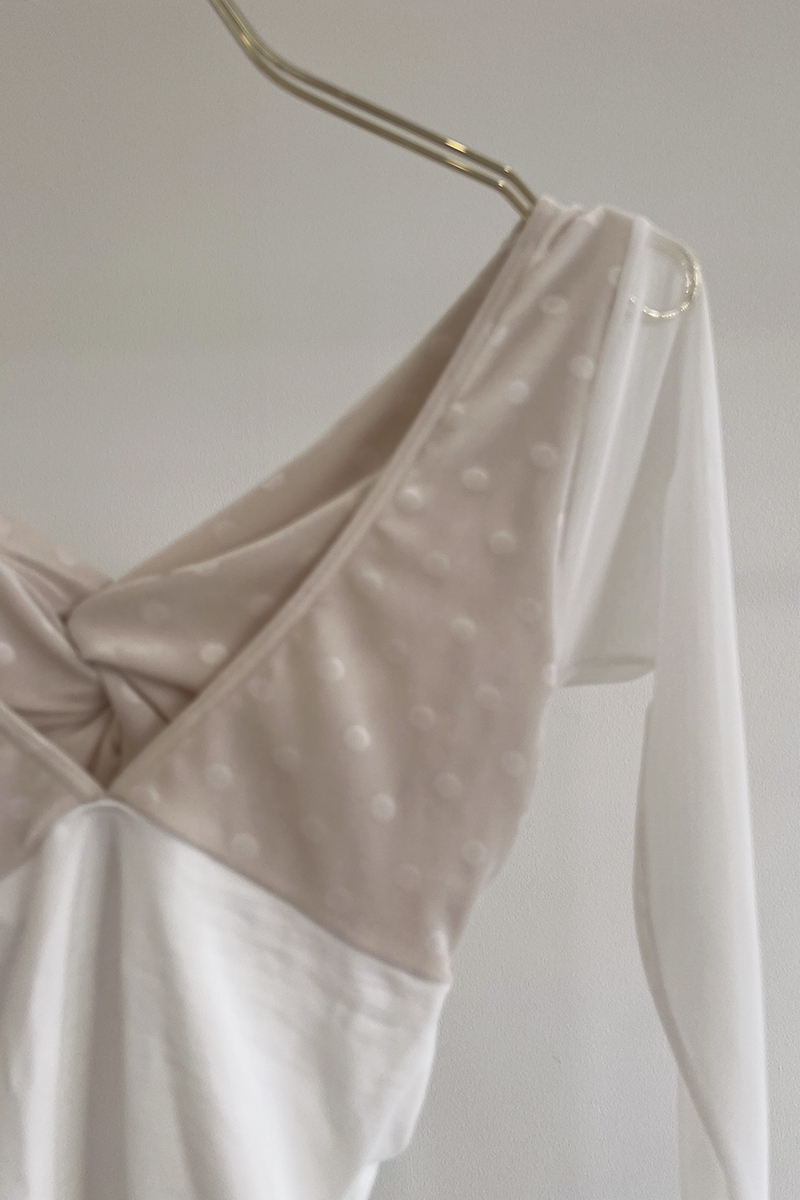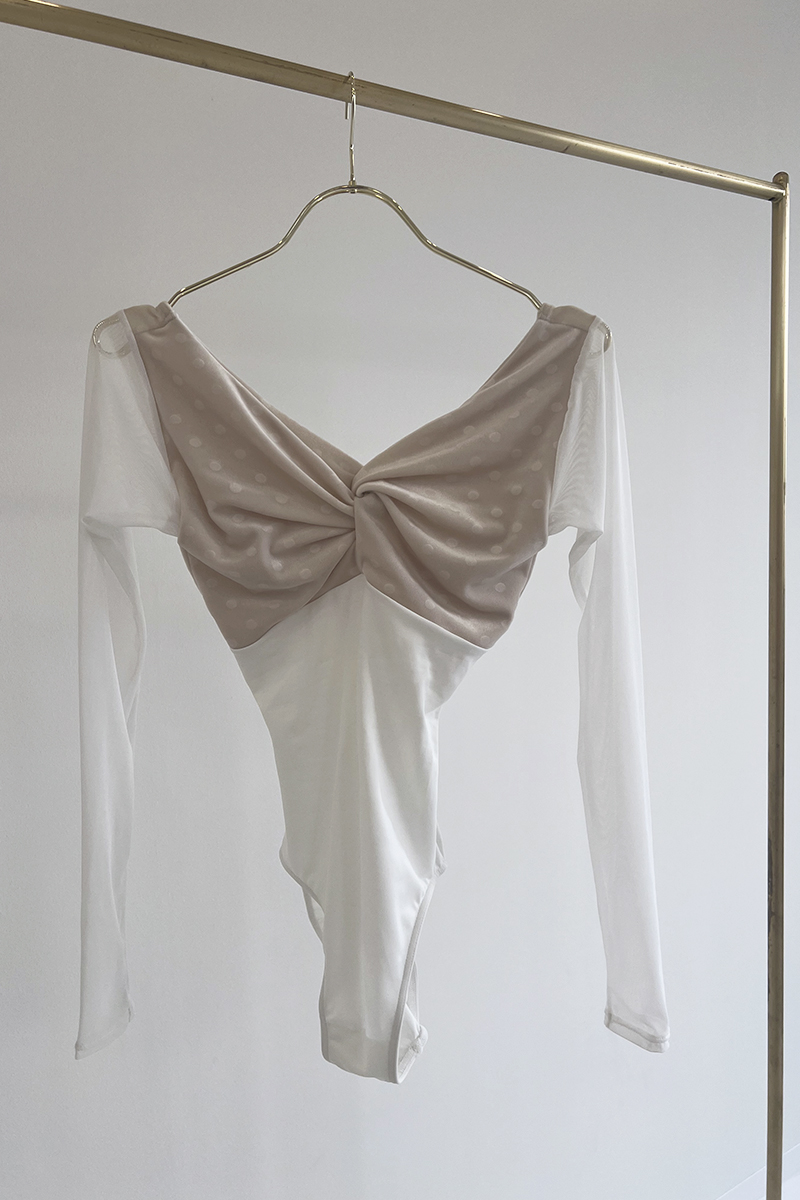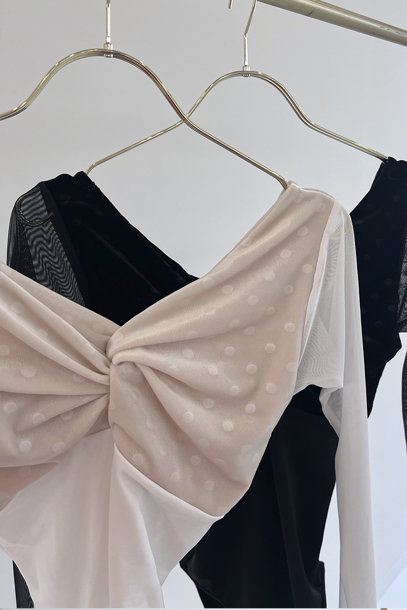 胸元には、美しい立体感を生み出すツイストディテールを施し、