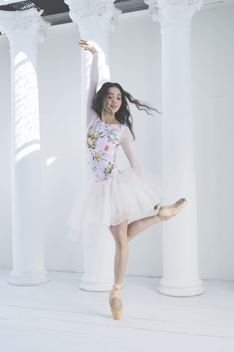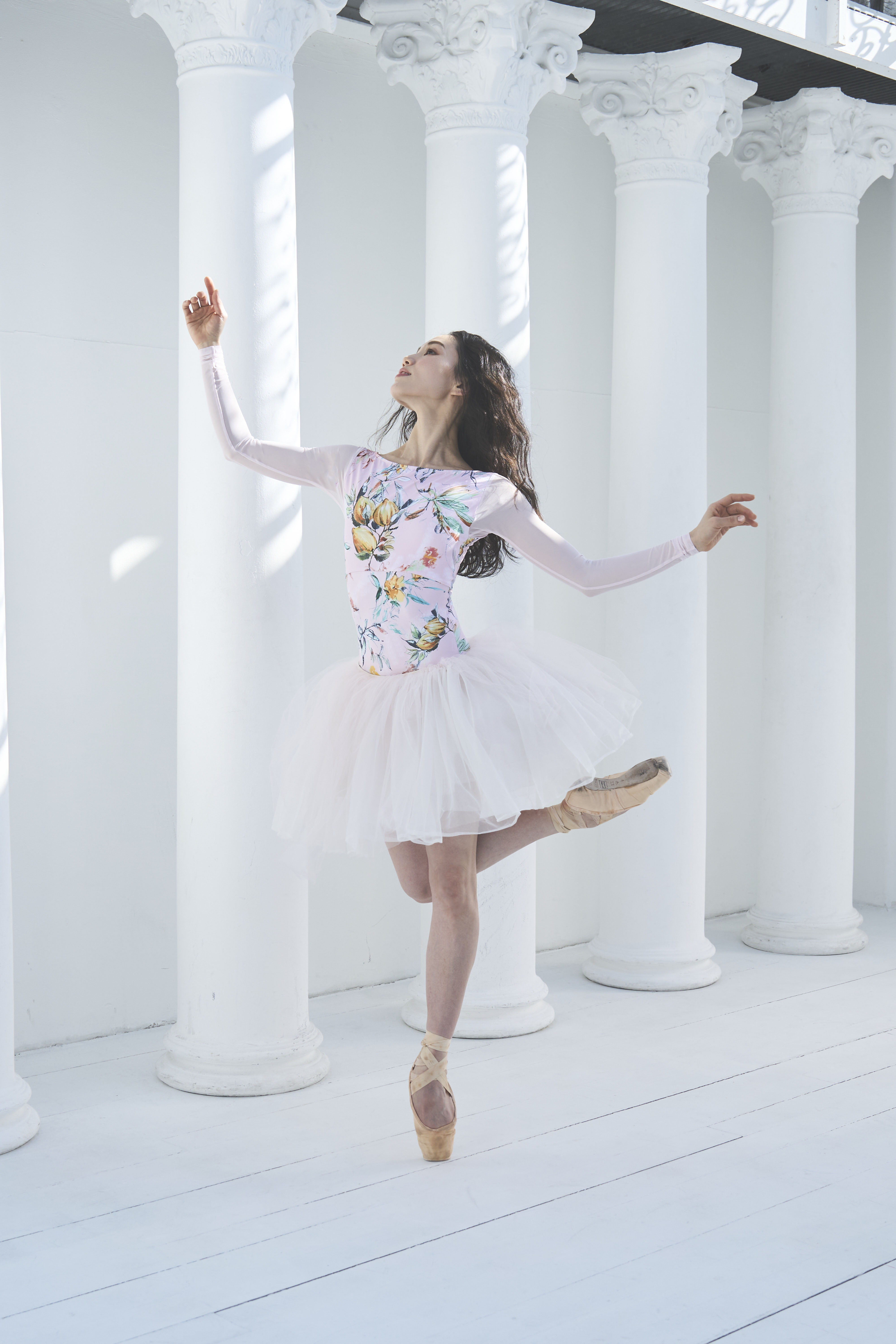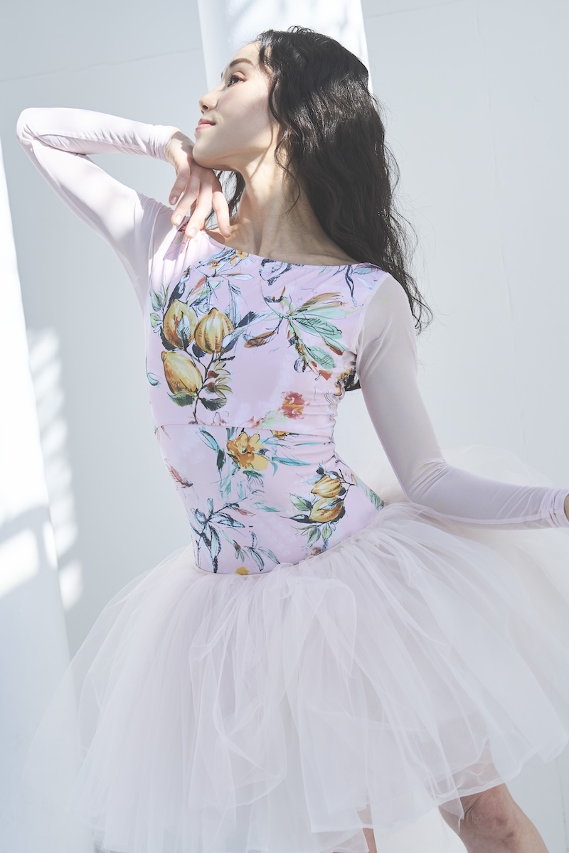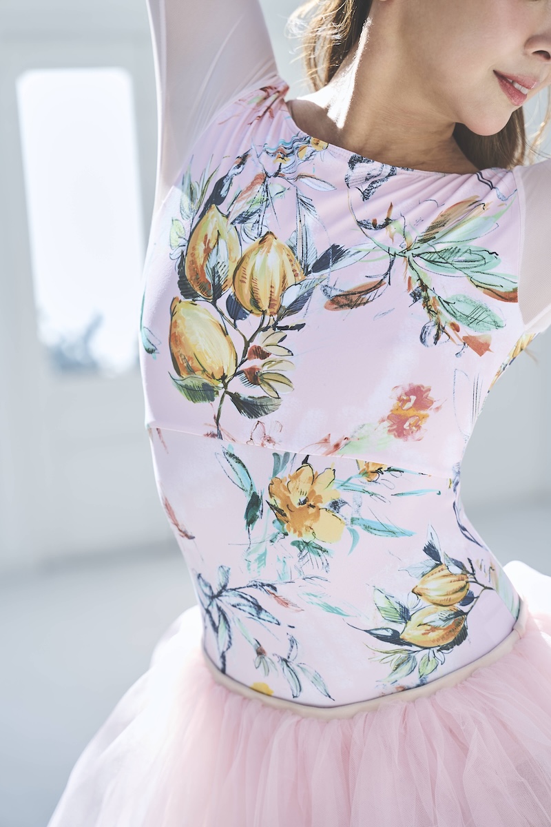 ボートネックレオタードと長袖がドッキングされた大人気の型。