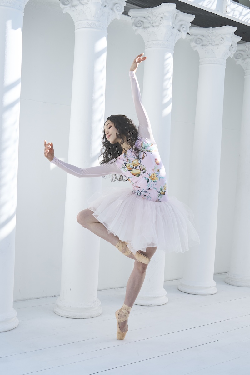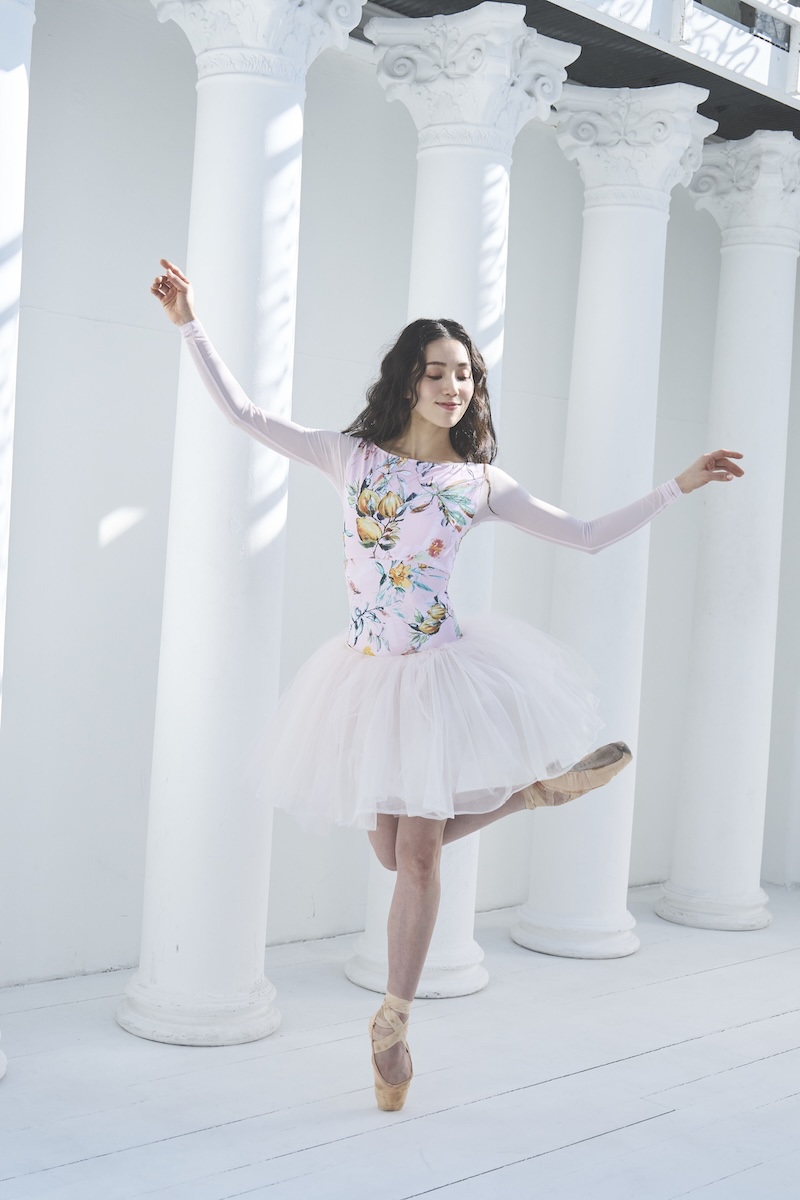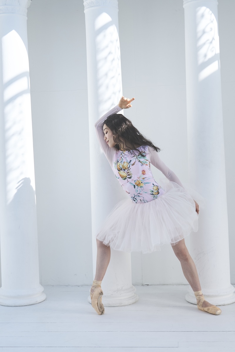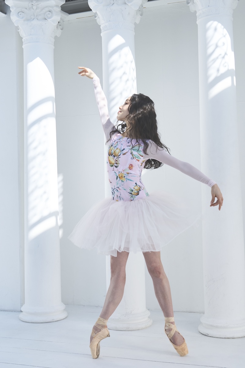 ボートネックレオタードと長袖がドッキングされた大人気の型。