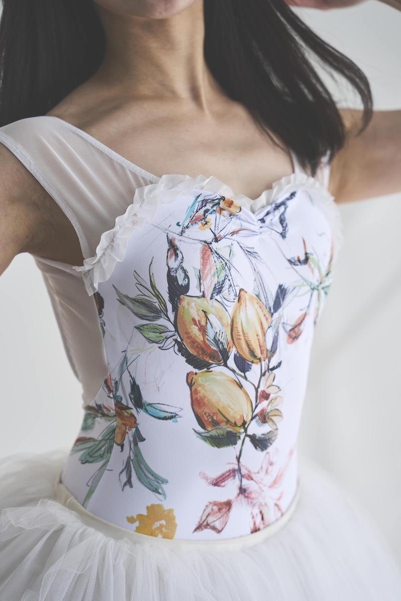 クリーンなホワイトをベースに、軽やかに描かれたレモンとフラワーモチーフが映えるファブリック。